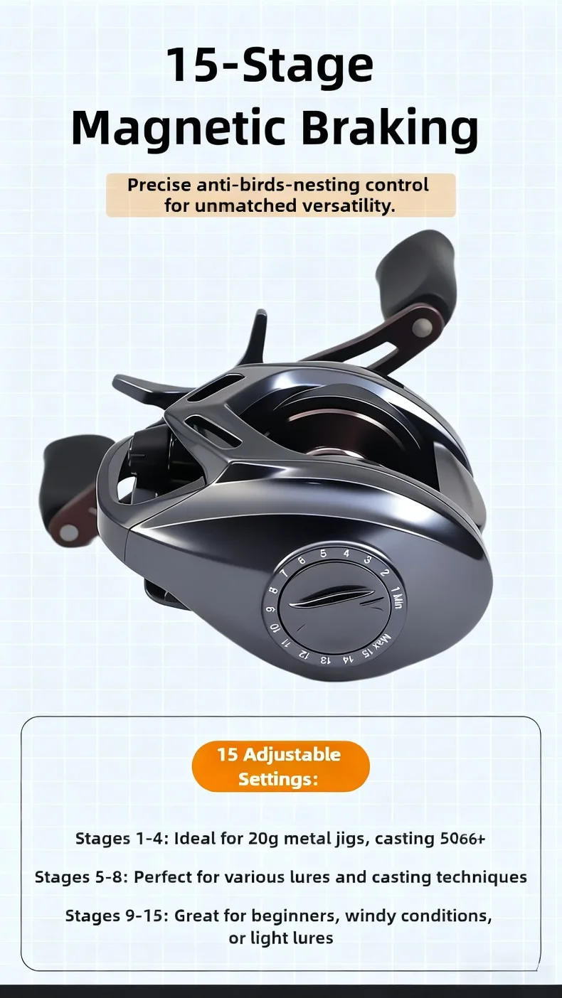 Con ajustes precisos para aplicaciones versátiles, este sistema reduce significativamente los juegos, lo que lo hace ideal para pescadores de todos los niveles para lograr lanzamientos más largos y suaves.