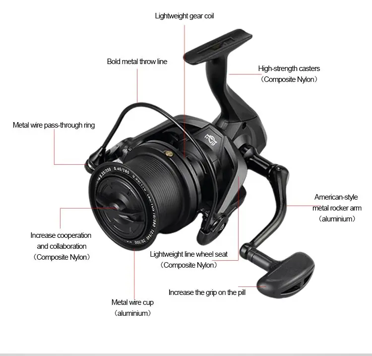 Los carretes giratorios HUIDIAO mejoraron el cuerpo de nailon de mezcla de fibra de carbono.Aumente la resistencia y la durabilidad manteniendo el peso ligero.Un carrete de pesca confiable para todos los escenarios de agua salada, como la pesca de surf y la pesca en alta mar.