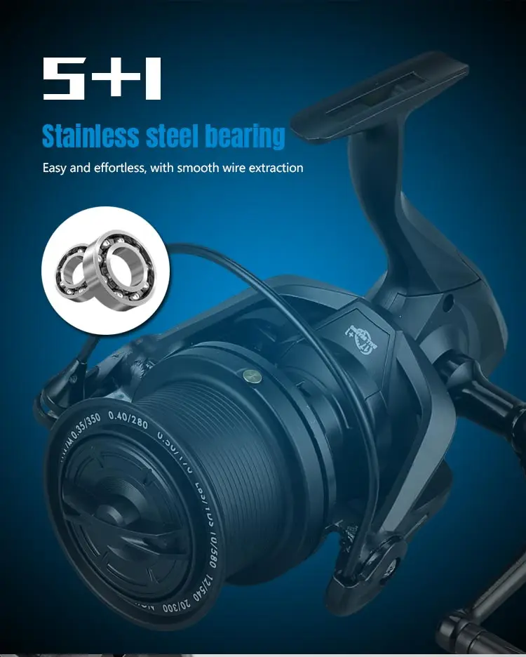 Cinco rodamientos blindados de acero inoxidable repelen la arena, la sal y los escombros al tiempo que garantizan una suavidad a largo plazo.Combinado con un rodamiento anti-retroceso instantáneo, este sistema evita la reproducción posterior y reduce la corrosión, el ruido y la incautación de arena.