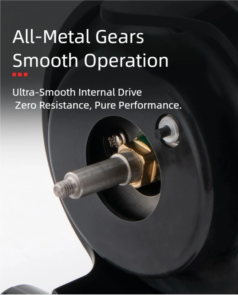 El engranaje impulsor y el piñón totalmente metálicos garantizan una recuperación suave como la mantequilla bajo carga.Ya sea que esté trabajando lentamente un cebo en agua fría o luchando contra un pez potentes, este sistema ofrece un rendimiento constante sin juego ni molienda.