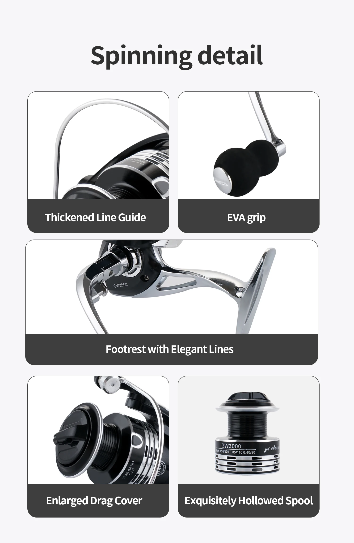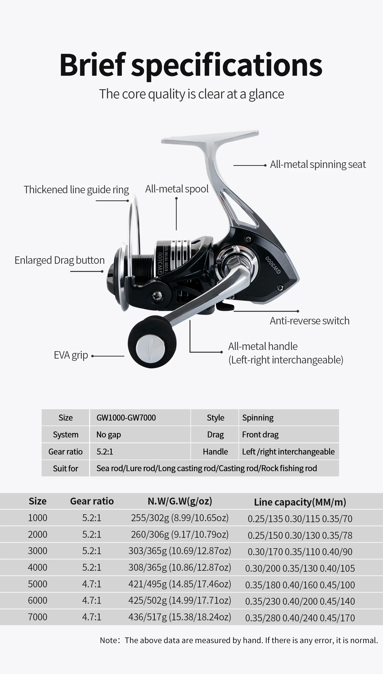 ¡Aprovecha peces grandes con confianza!Las arandelas de fieltro lubricadas proporcionan una presión constante sin hinchazón, incluso después de la exposición al agua.Ofrece respuesta instantánea y potencia de frenado confiable para sobretensiones repentinas.