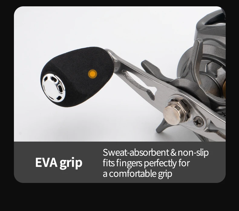 Construido con un brazo de metal sólido y una perilla ergonómica de EVA para una comodidad y control superiores, lo que permite a los pescadores batear y aterrizar peces del tamaño de un trofeo con confianza.