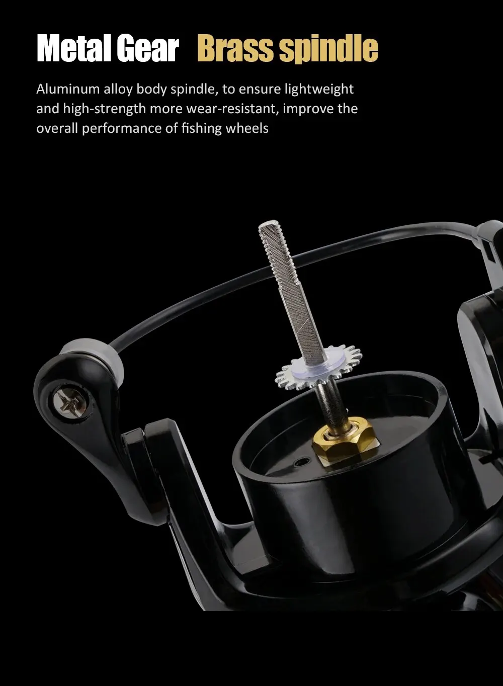 • Carrete de metal: El carrete de metal es duradero y resistente a la corrosión, lo que garantiza que su carrete durará años.