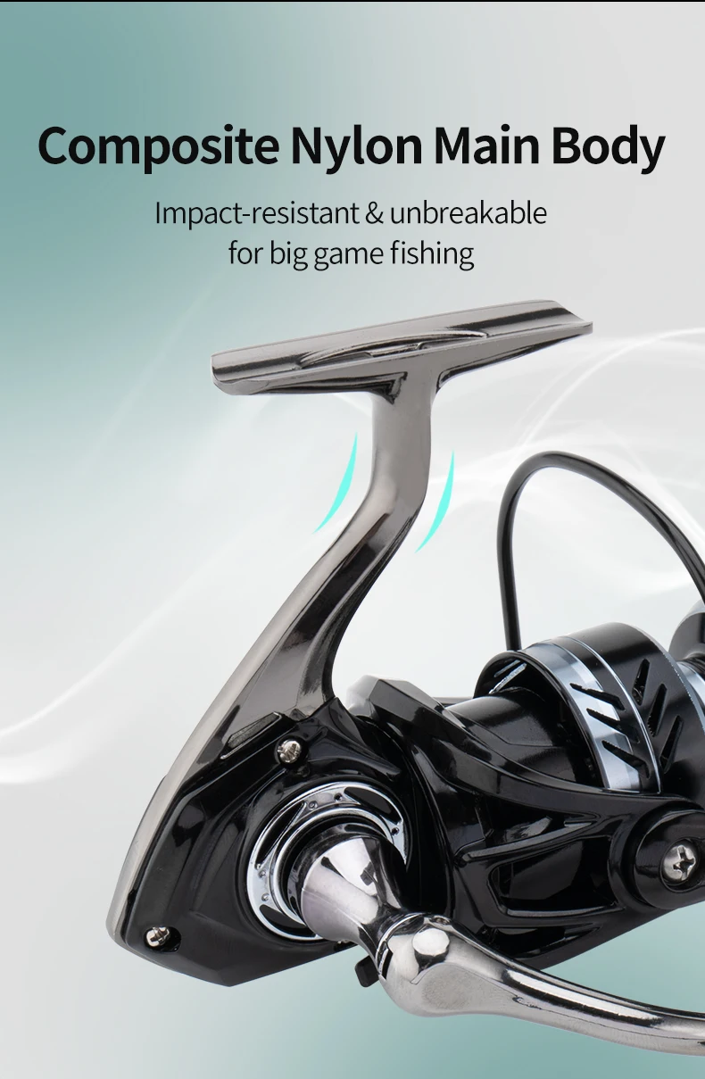 Construido con un compuesto de nailon resistente y reforzado, este marco puede soportar golpes.Es liviano pero increíblemente duradero, resiste sobretensiones repentinas y batallas largas con peces de caza grandes sin agrietarse ni flexionarse.