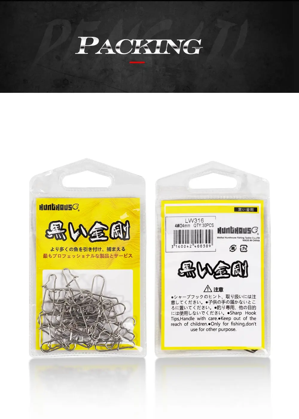 Hunthouse-accesorios para Señuelos de Pesca, conector de acero inoxidable, señuelo de anzuelo a presión, aparejos de conexión, bloqueo de Clip de pesca, 30 Uds.
