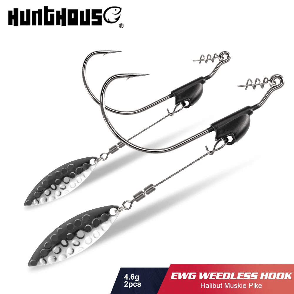 Hunthouse-anzuelo individual de pesca con juego de cuchara de Metal, acero al carbono, 1/0, 2/0, 3/0, 2 uds., para señuelo suave, gusano, carpa, lubina, accesorios