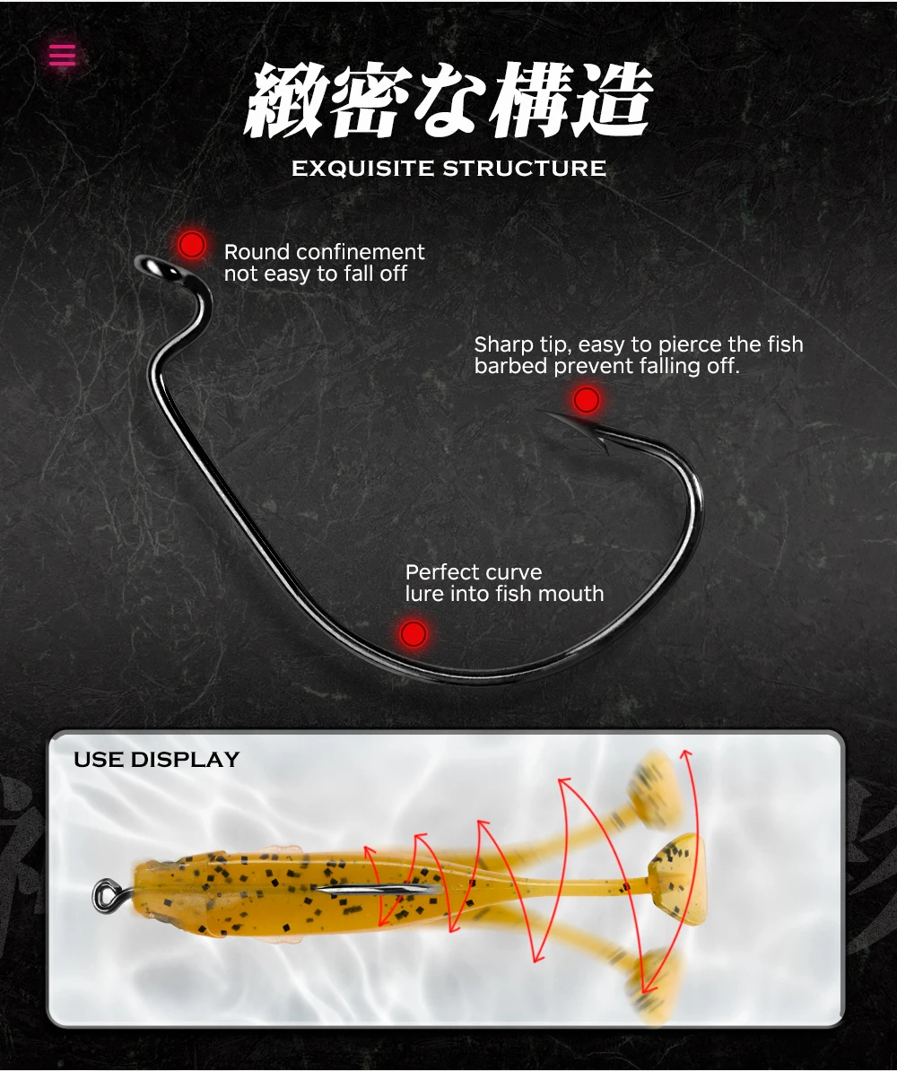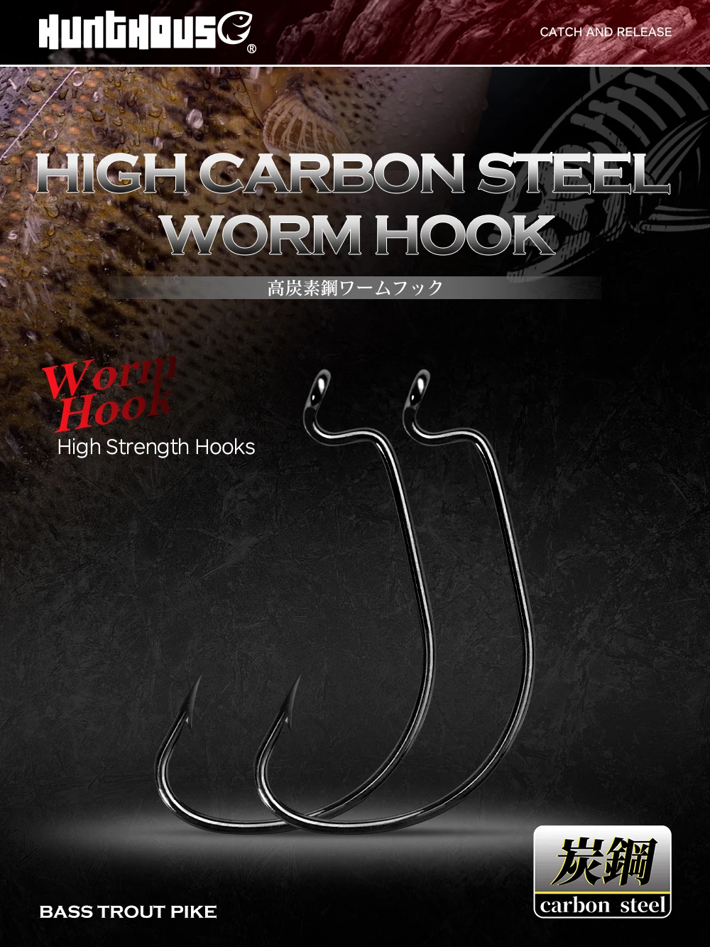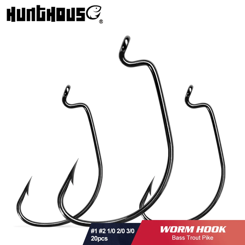 Hunthouse-anzuelo de una sola manivela de pesca, púas 1 #2 #1/0 2/0 3/0, acero al carbono alto, 20 unids/bolsa para accesorios de señuelo de gusano suave