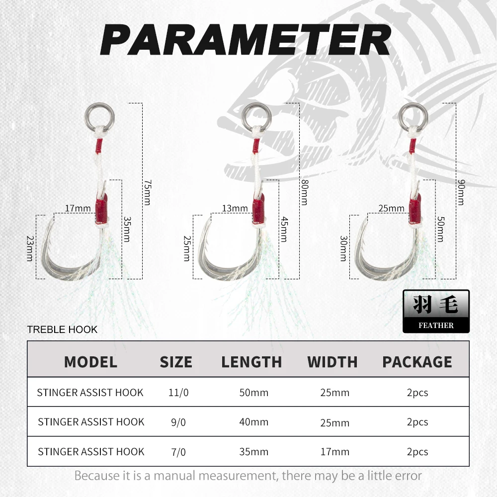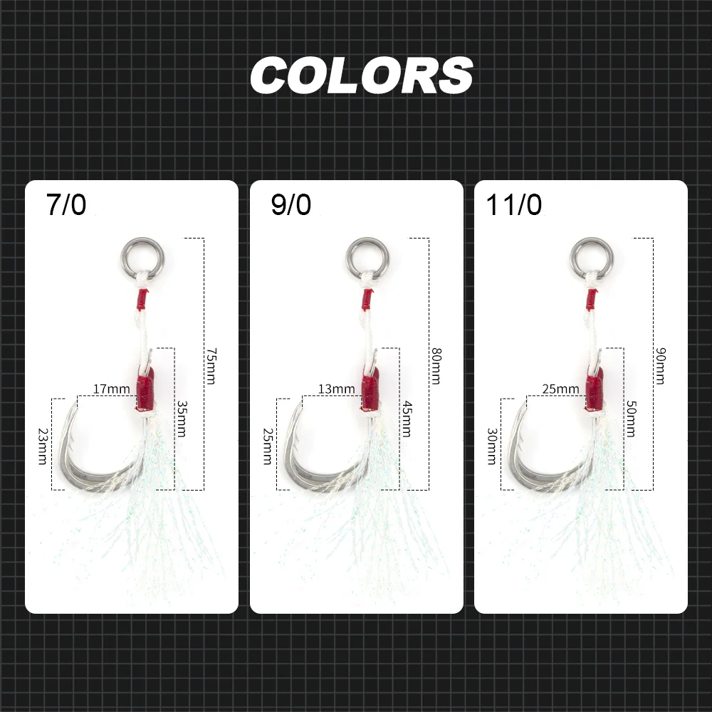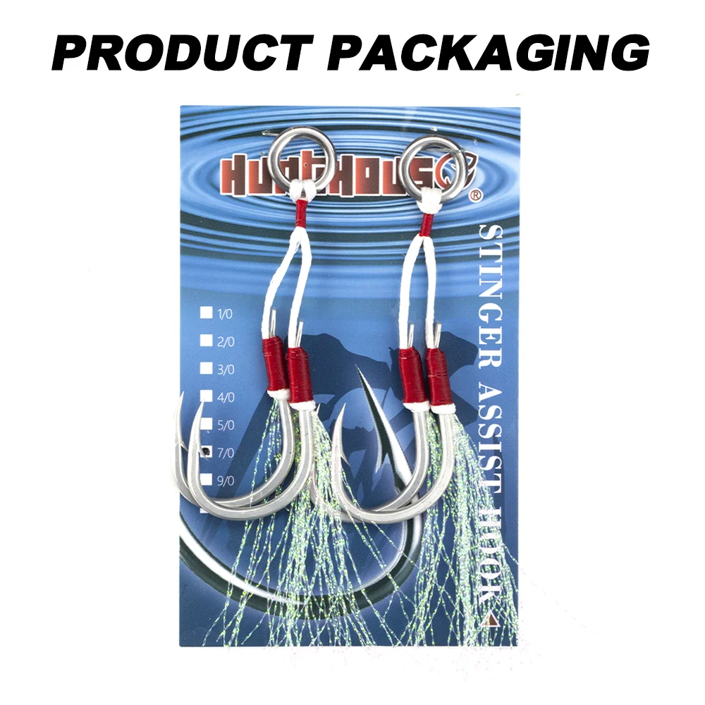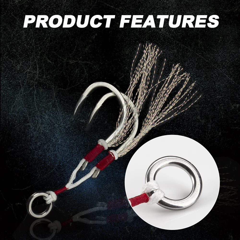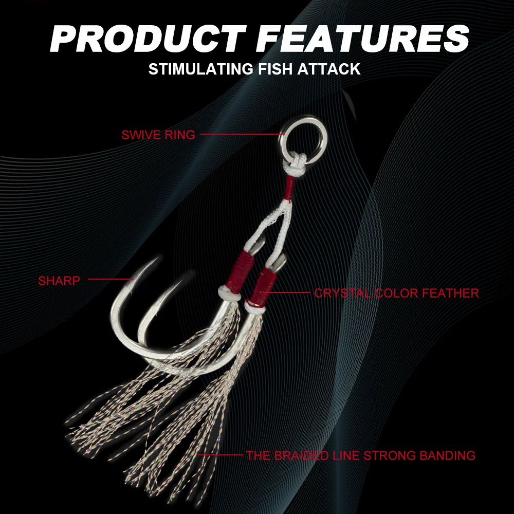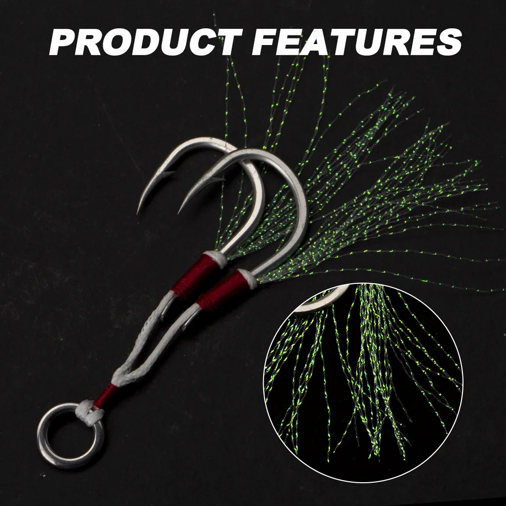 Hunthouse, 2 par/lote, anzuelo de pesca, anzuelos de doble par, hilo de púas, accesorios de plumas, acero de alto carbono, Jigging lento, agua de mar