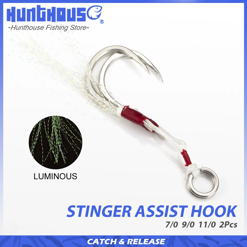 Hunthouse, 2 par/lote, anzuelo de pesca, anzuelos de doble par, hilo de púas, accesorios de plumas, acero de alto carbono, Jigging lento, agua de mar