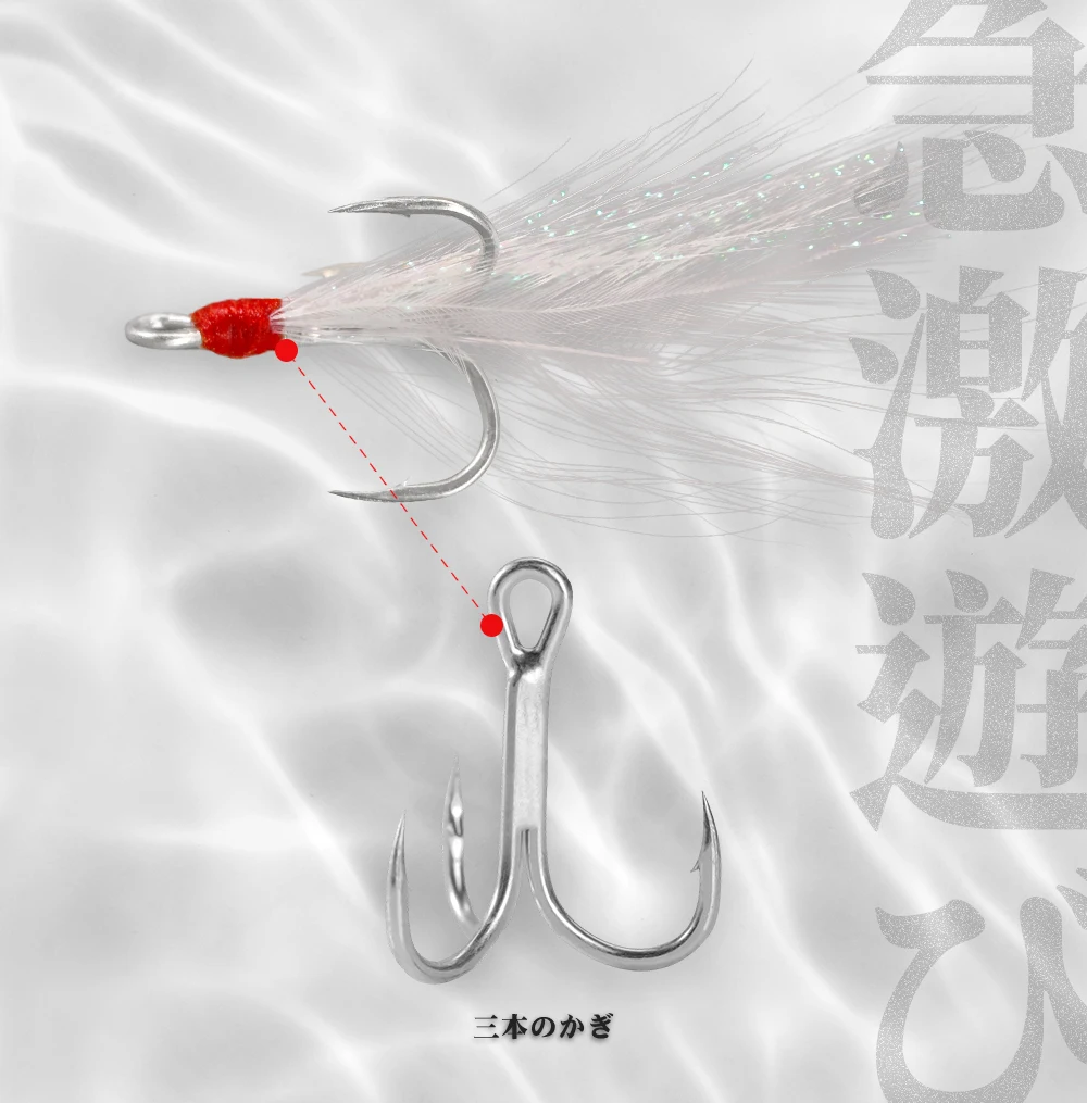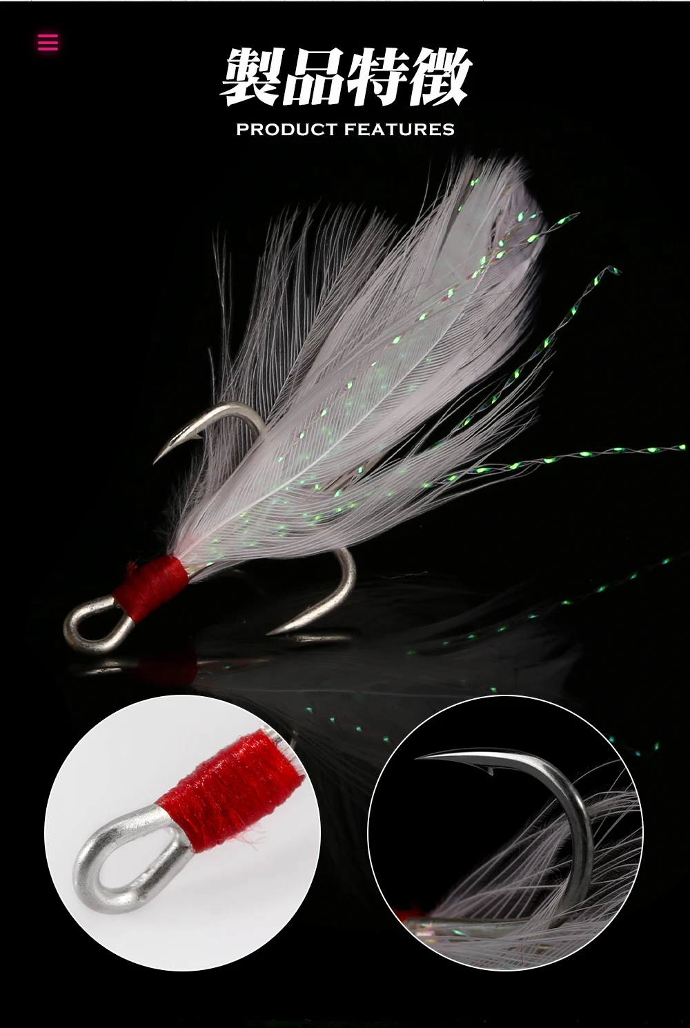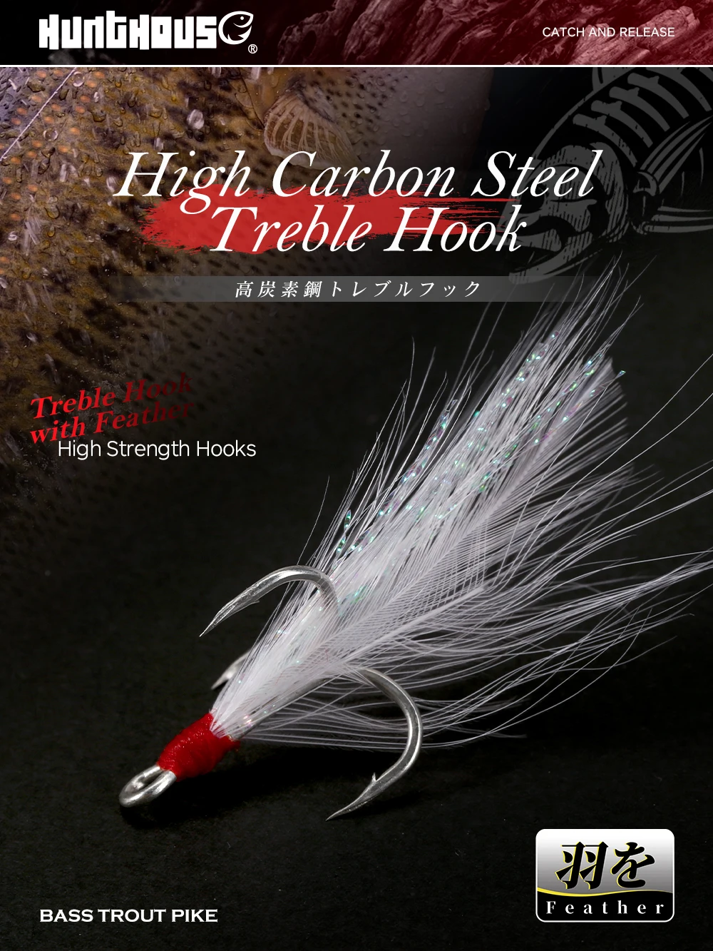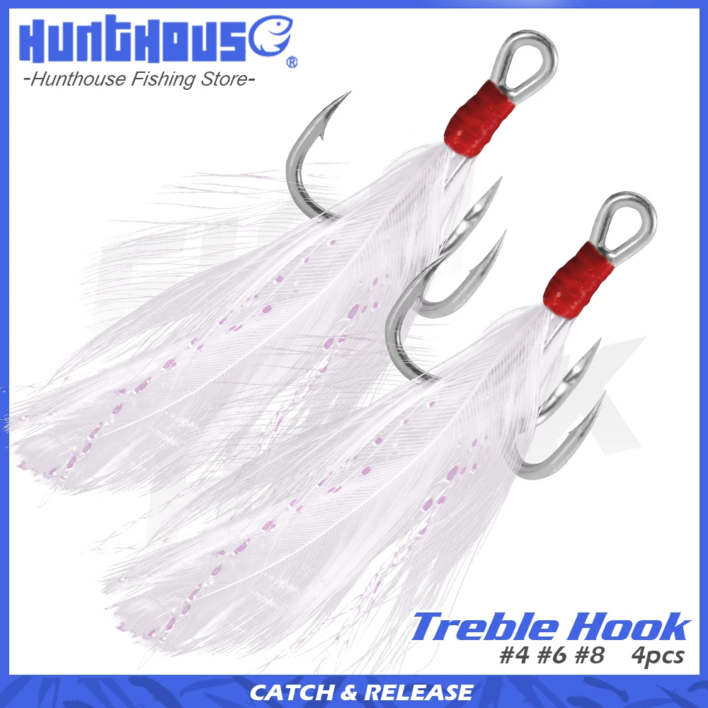 Hunthouse 4 #6 #8 # anzuelos triples 4 unids/lote 3X anzuelo triple de pesca fuerte con plumas acero alto carbono para herramienta de señuelo duro