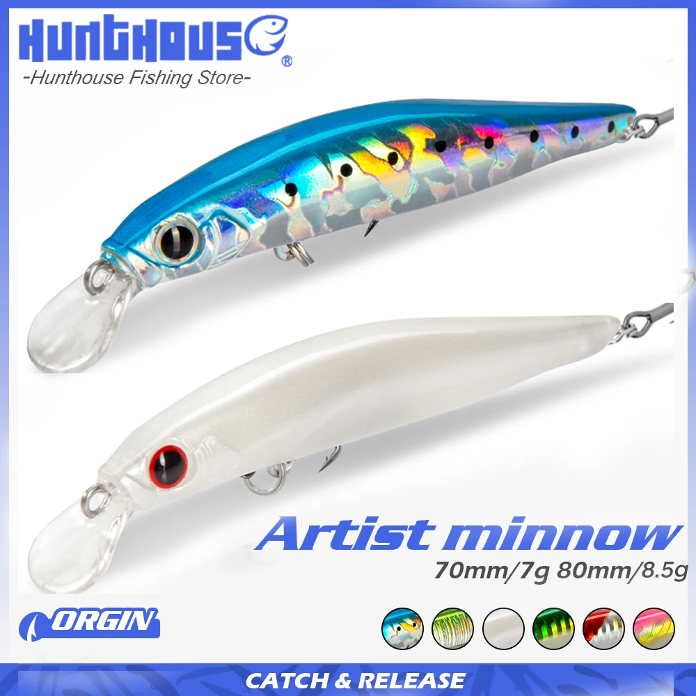 Hunthouse artista Minnow Twitch señuelo de pesca Jerkbait hundido cebo duro lento Wobblers para Lucio trucha 70mm 80mm aparejos de peces de mar