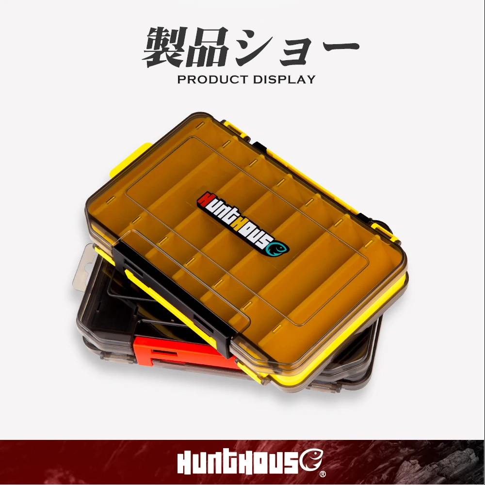 Hunthouse-caja de aparejos de pesca de 14/19/27 cm, compartimentos, estuche de doble cara, almacenamiento de anzuelos de cebo, accesorios de pesca