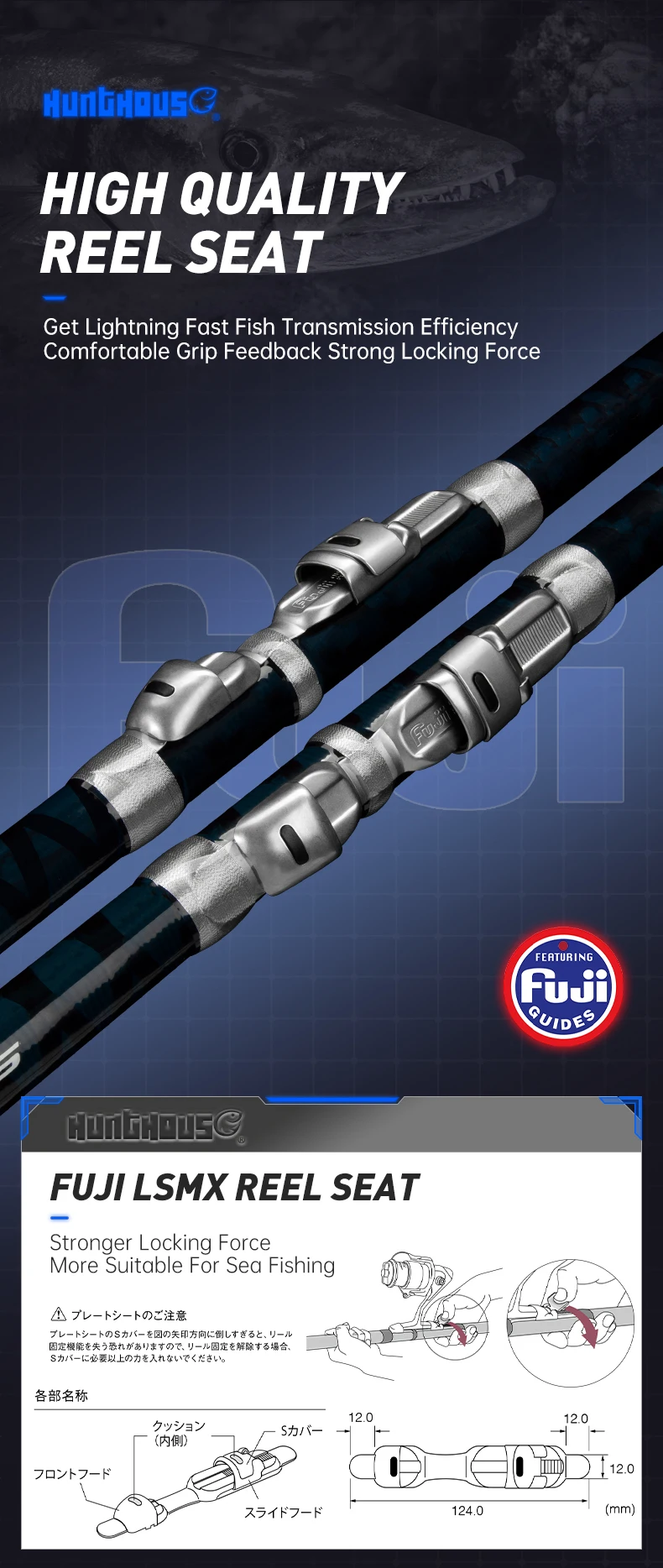 Hunthouse Caña de pescar Surf de 3 piezas 4,05 M 4,25 m Peso del señuelo 100-250g Luz giratoria 40T Fibra de carbono Parte completa Fuji Océano Agua salada
