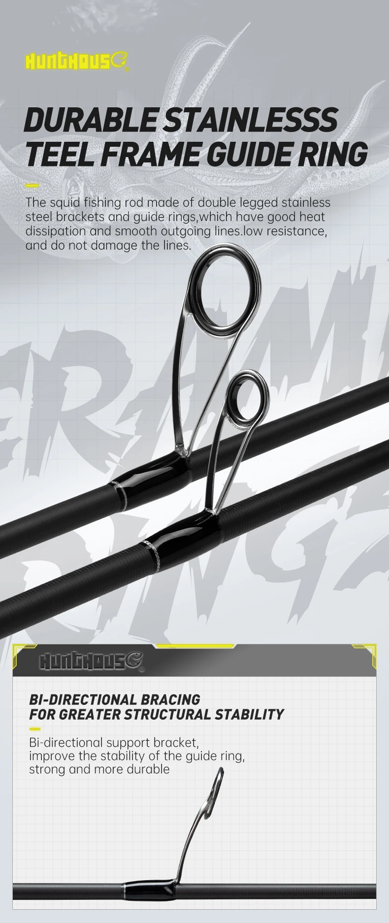 Hunthouse 40T caña de pulpo de alto carbono 2,6 m 2,7 m señuelo WT 7-30g ML Fuji caña de pescar para calamar sepia pulpo barco océano caña