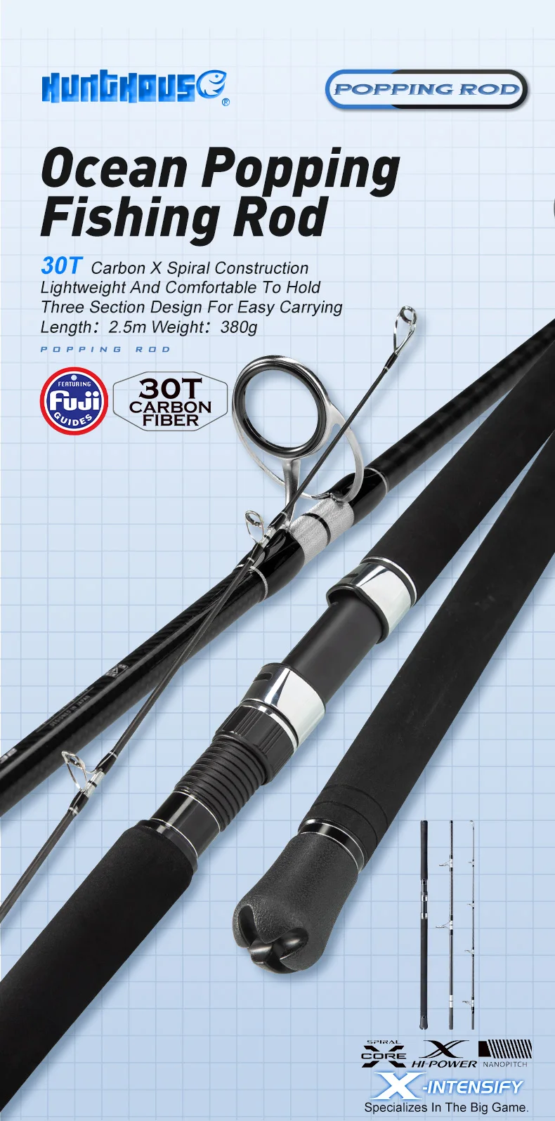 Hunthouse Popping Fising Rod 3 secciones Ocean Spinning 30T 2,5 m señuelo peso 200g fibra de carbono Fuji guía anillo barco Accesorios