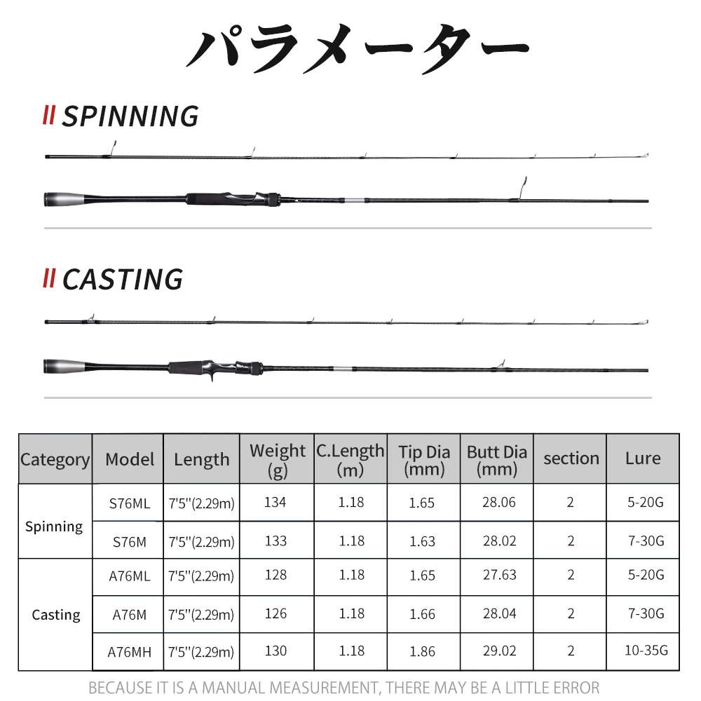 Hunthouse NUEVA orilla de pesca caña de lubina 2,29 M fundición giratoria ML/M/MH carbono rápido Fuji A guía 5-35G 2 secciones Baitcasting