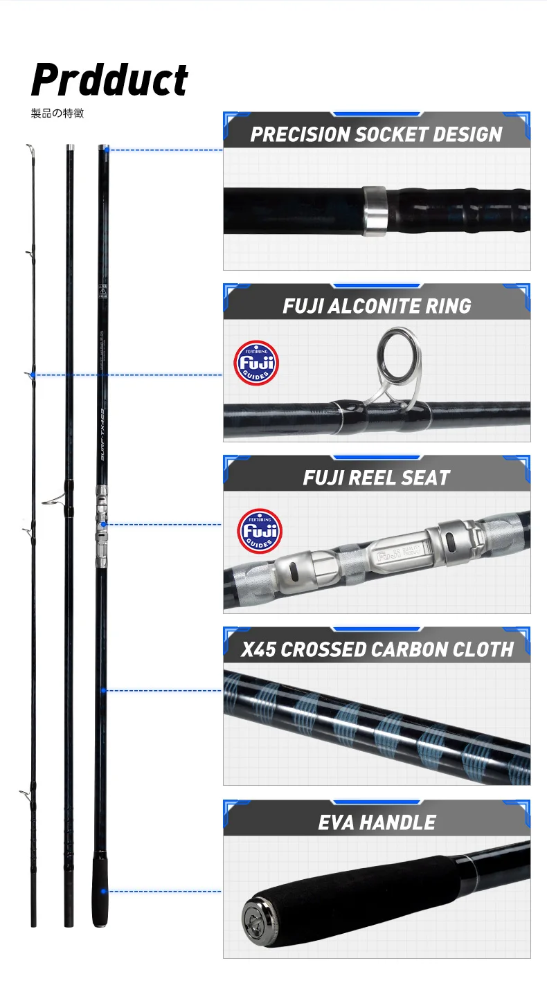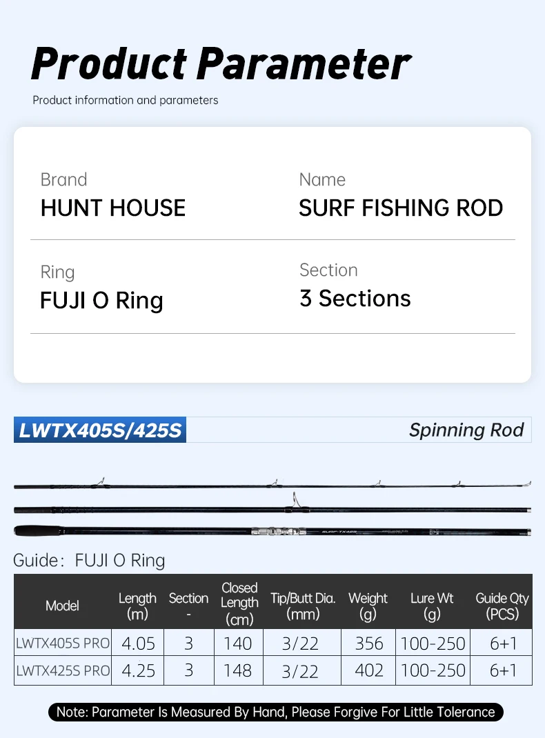 Hunthouse Surfcasting Spinning Gazer caña de pescar 100-250g Fuji guía carrete asiento Surf fibra de carbono 4,25 m 4,05 m 3 secciones playa