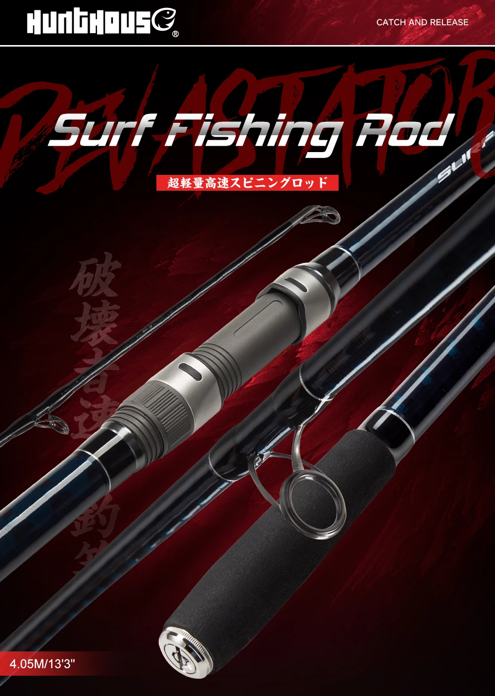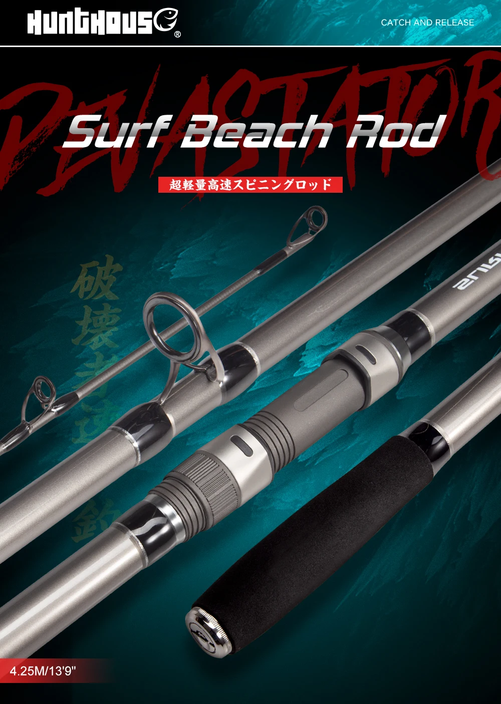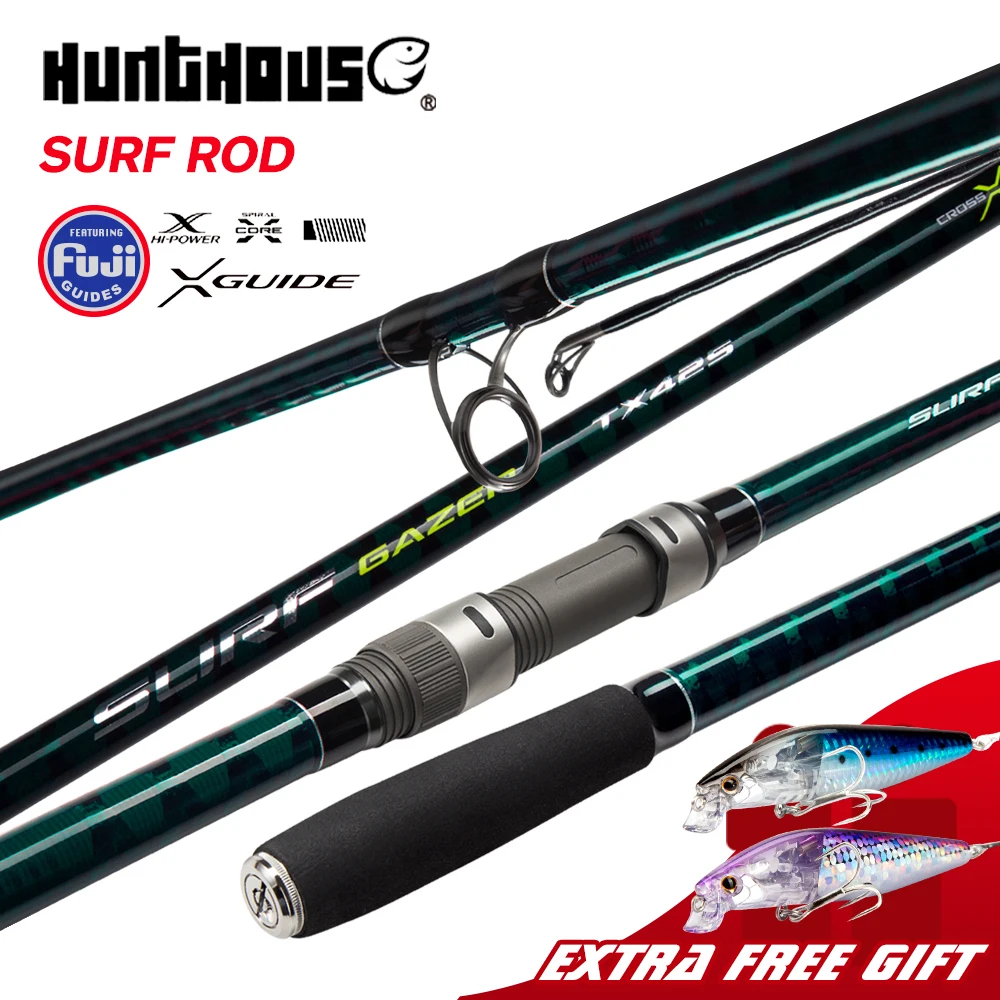 Hunthouse-caña de pescar giratoria para Surfcasting, guía Fuji de fibra de carbono, 4,27 m, 4,25 m, 4,05 m, 3 secciones