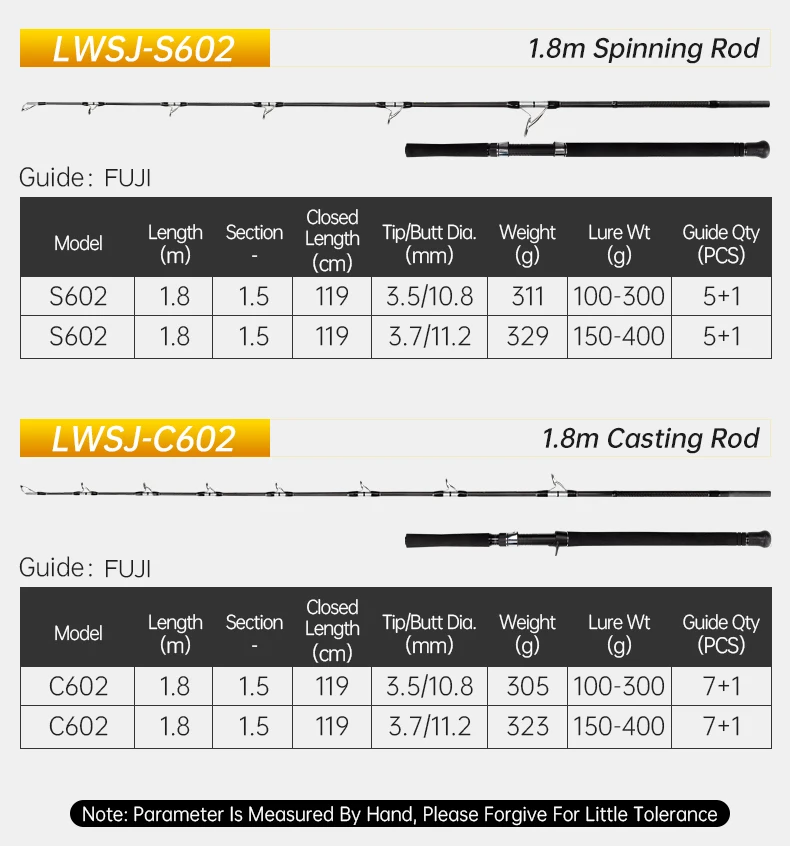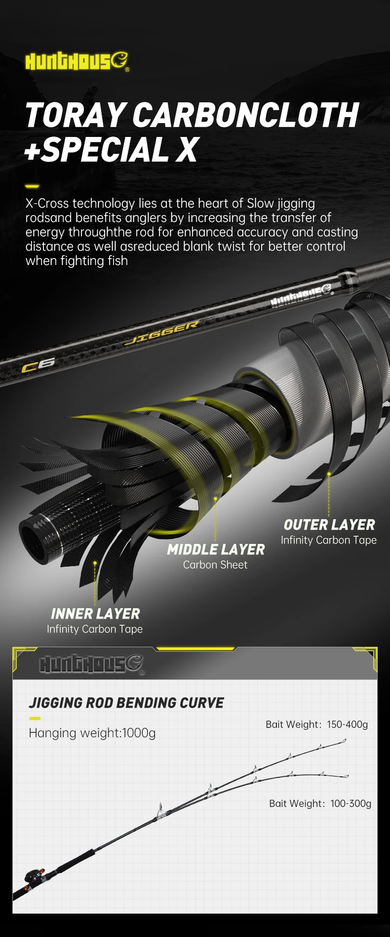 Hunthouse UL 1,8 m Caña de pescar Jigging 1,5 Secciones Peso del señuelo 100-400g Fundición/Spinning Fibra de carbono Full Japan Fuji Part Ocean