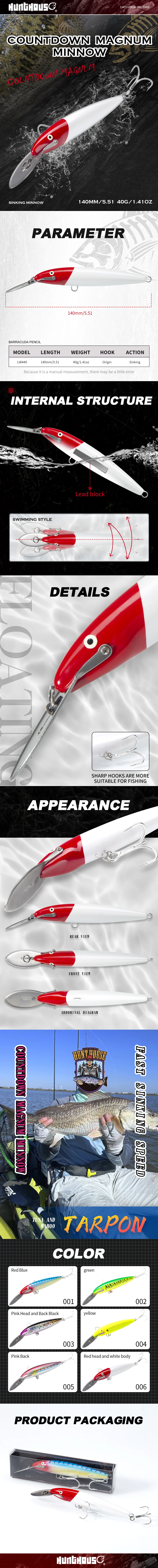 Hunthouse cuenta regresiva Magnum hundimiento Minnow señuelo de pesca 140mm 40g cebo duro de agua salada para Blues Tarpon atún Wahoo Tackle