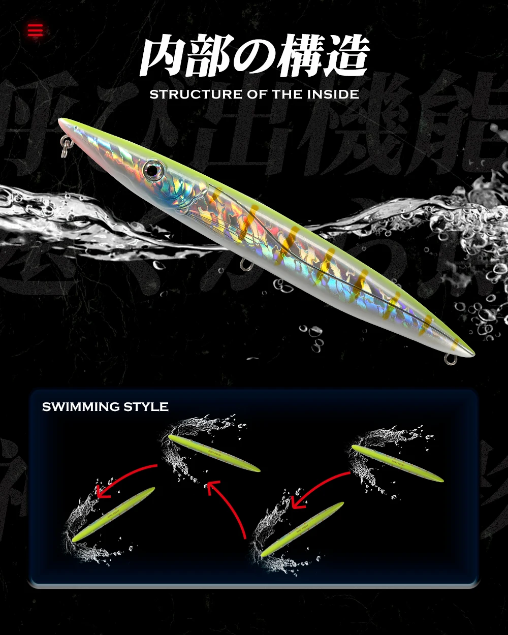 1.Reproduce fielmente un pequeño escupir irresistible a muchos depredadores como anjovas, palomitas, la misma barra racudas, mar.lubina, atún, etc.