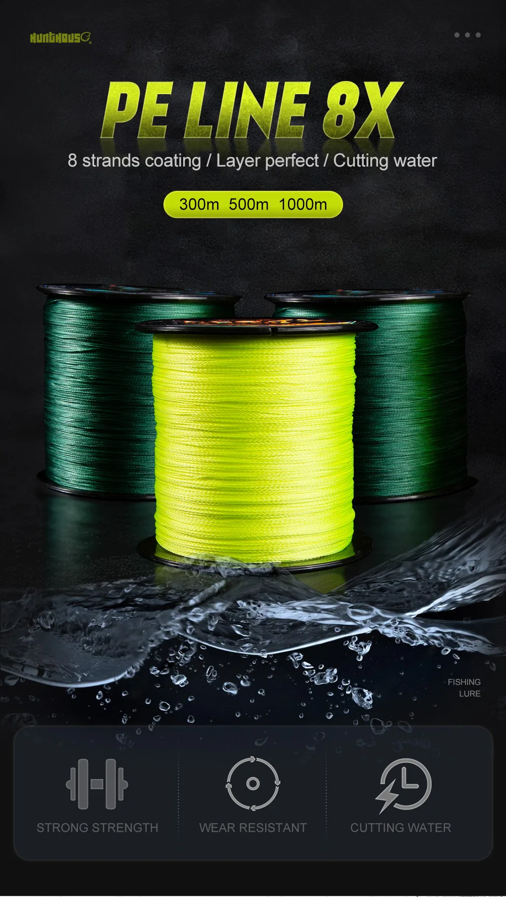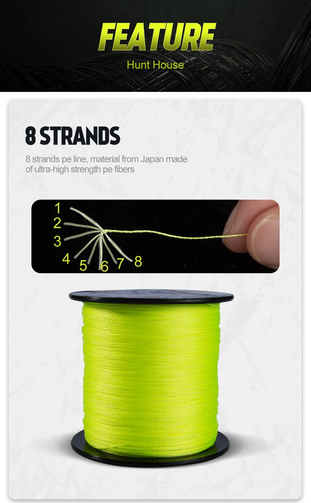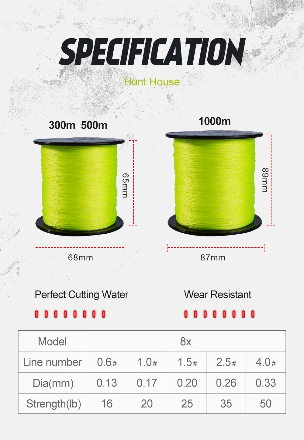 Hunthouse-Hilo de pescar trenzado, 8 hebras, 300m, 500m, 1000m, 4 hebras, 16, 25, 35, 50lb, hecho en Japón
