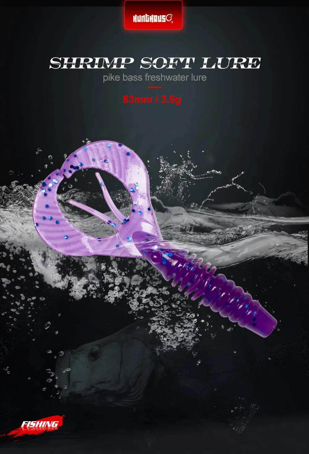 Señuelo suave de camarón Hunthouse 5 unids/bolsa PVC 83mm 3,9G Lucio bajo para pesca señuelos suaves 2020 nadar cebo falso señuelo de silicona PESC lw238