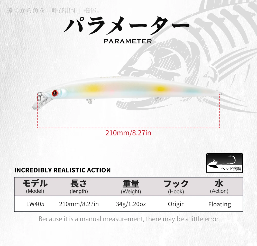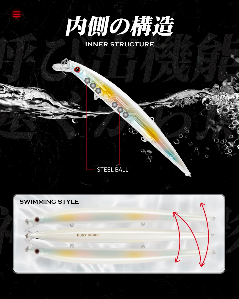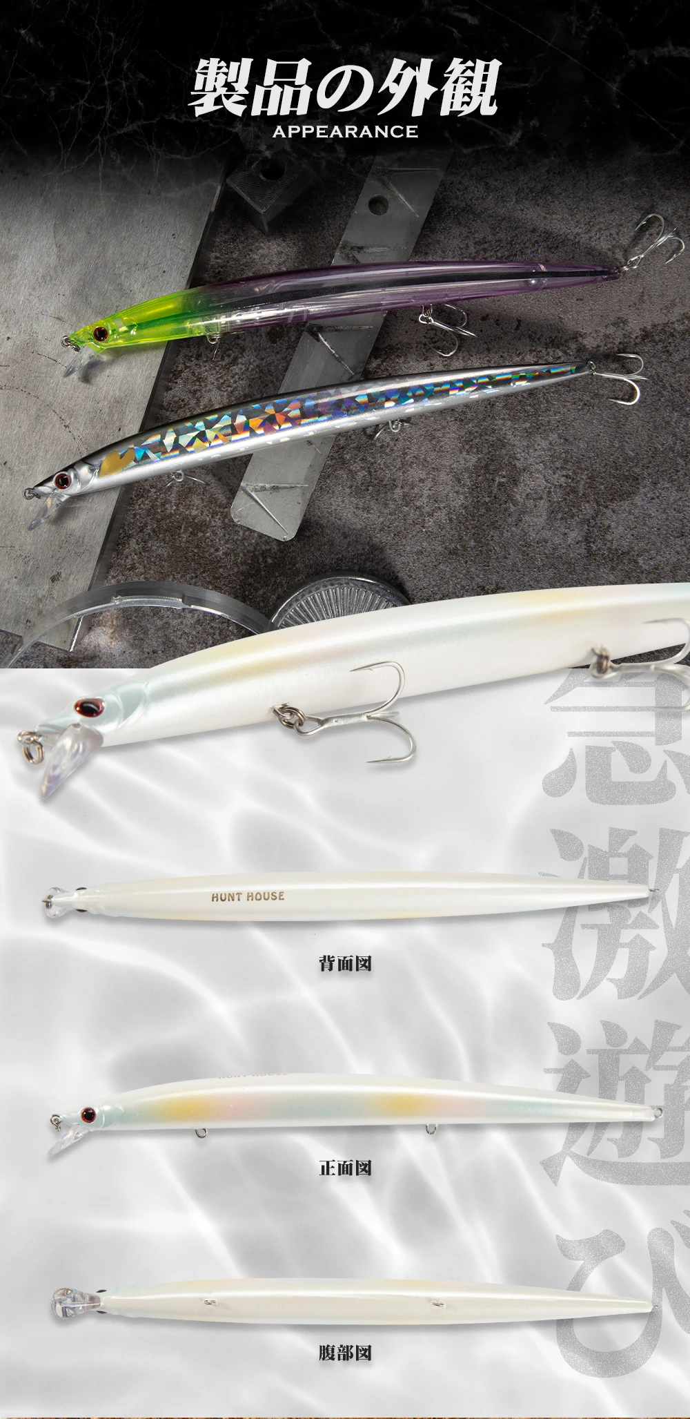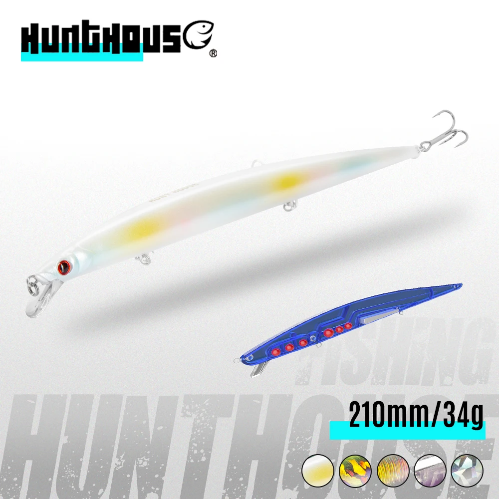 Hunthouse jerk minnow 210mm/34g señuelo de fundición larga minnow flotante pesca jerkbaits cuerpo acero inoxidable hardcore minnow 210