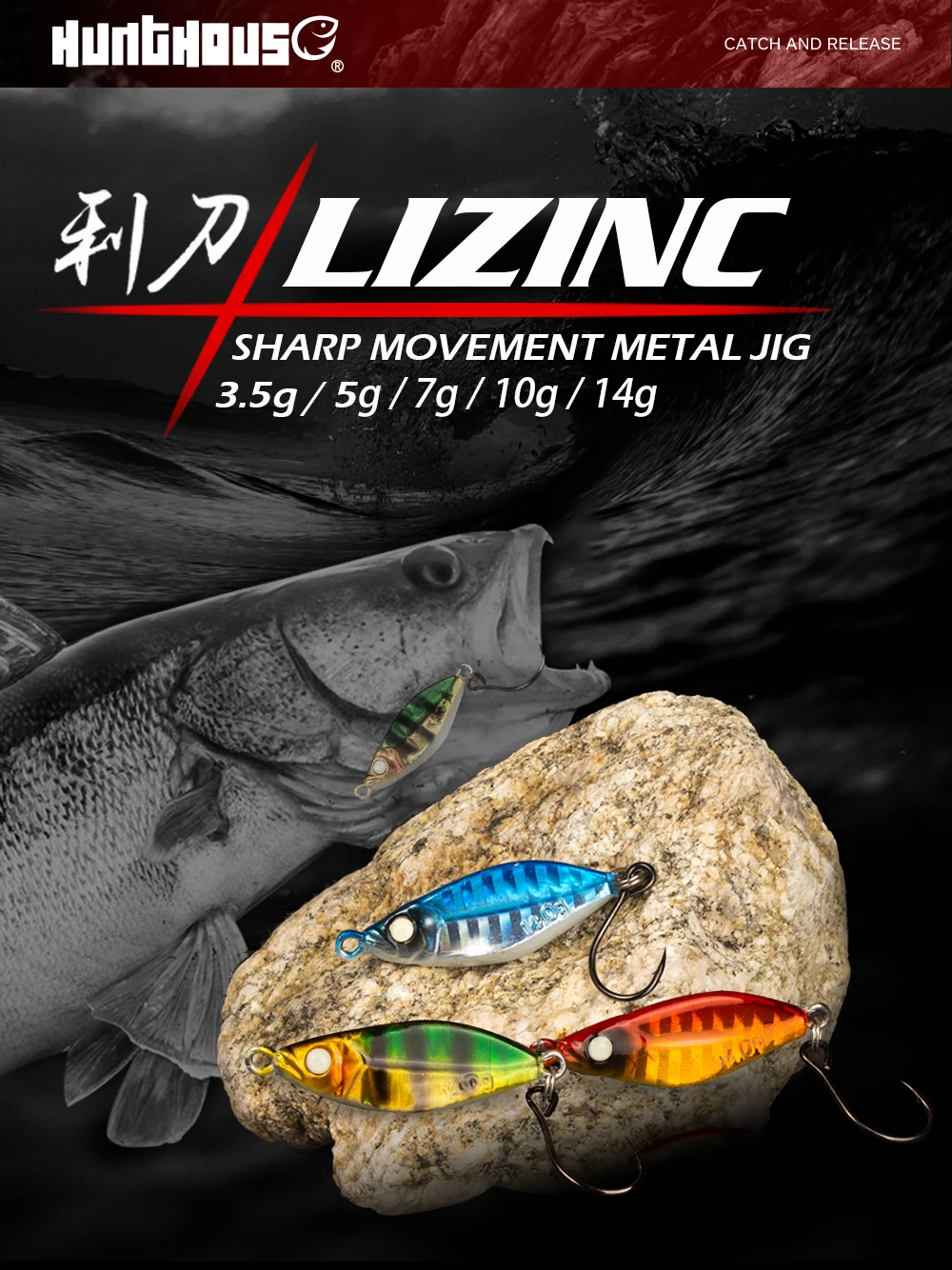Hunthouse LIZINC metal jig fishing lure 3.5/5/7/10/14g micro jig lures sinking shore jigging bait for fishing bass pike UV eyes