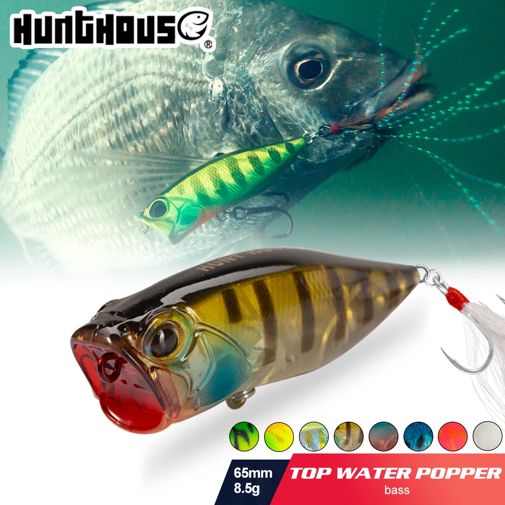 Hunthouse popper señuelo de pesca 65mm 8,5g topwater popper cebo flotante superior agua altwater pesca señuelos superficie pealis fangpop 65
