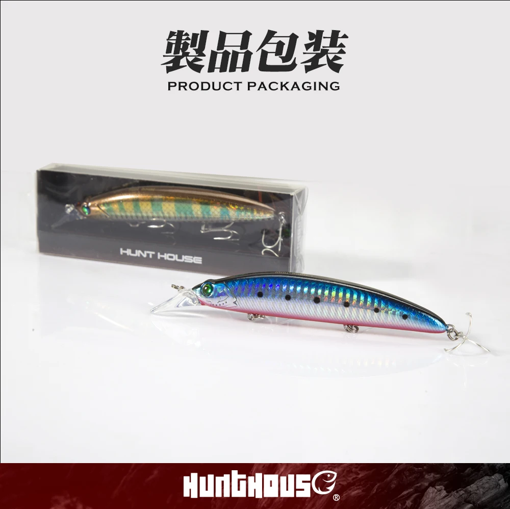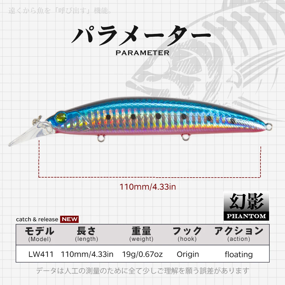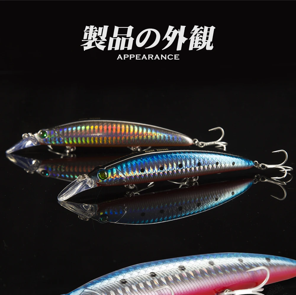 Hunthouse Minnow Poke Gyodo flotante Topwater señuelo de pesca Wobblers cebo duro Jerkbait labio 110mm 19g agua salada para aparejos de lubina