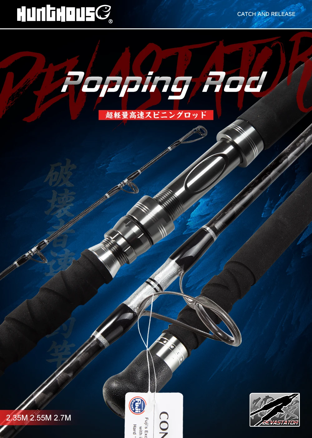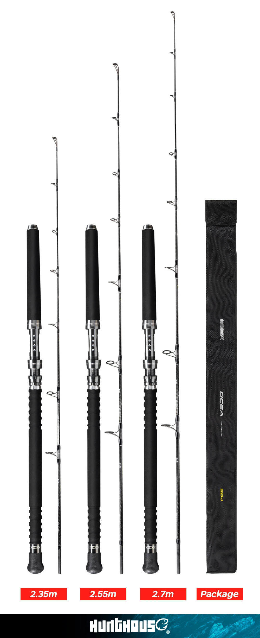 Hunthouse Ocea Game GT Popping Fishing Rod Spinning 100g Fuji Guide Carbon Fiber 2.35m 2.55m 2.7m Boat For Tuna Blue Marlin Rod Boat