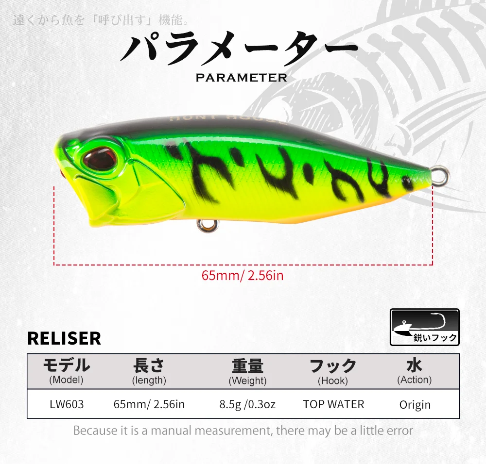 Hunthouse popper fishing lure 65mm 8.5g topwater poppers bait floating top water altwater pesca lures surface lures pealis fangpop 65