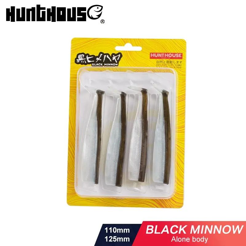 Hunthouse pececillo negro LW216 cuerpo 110mm 125mm 4 unids/bolsa fácil brillo señuelo de pesca señuelo suave plantilla cebo lubina señuelo souple