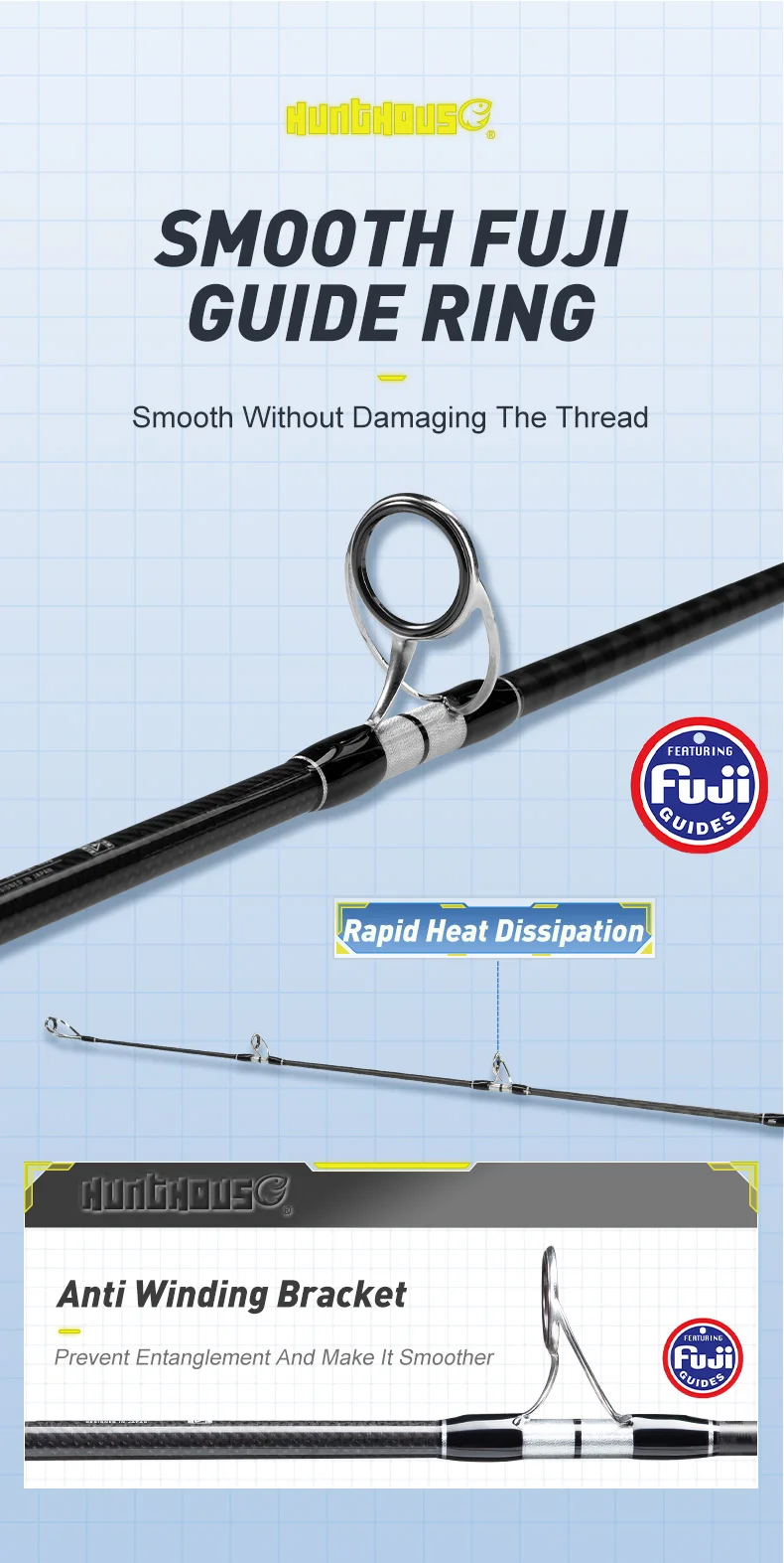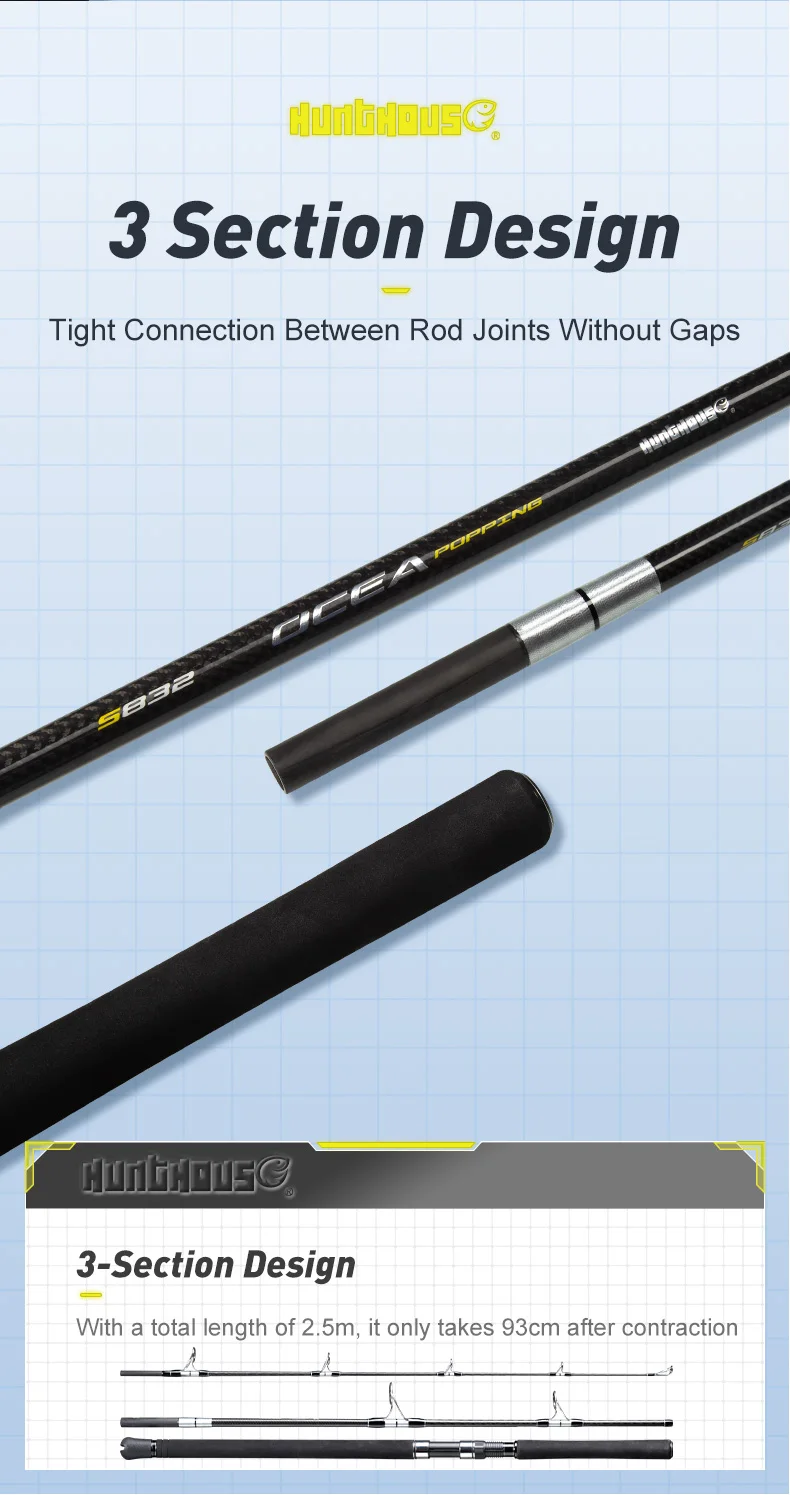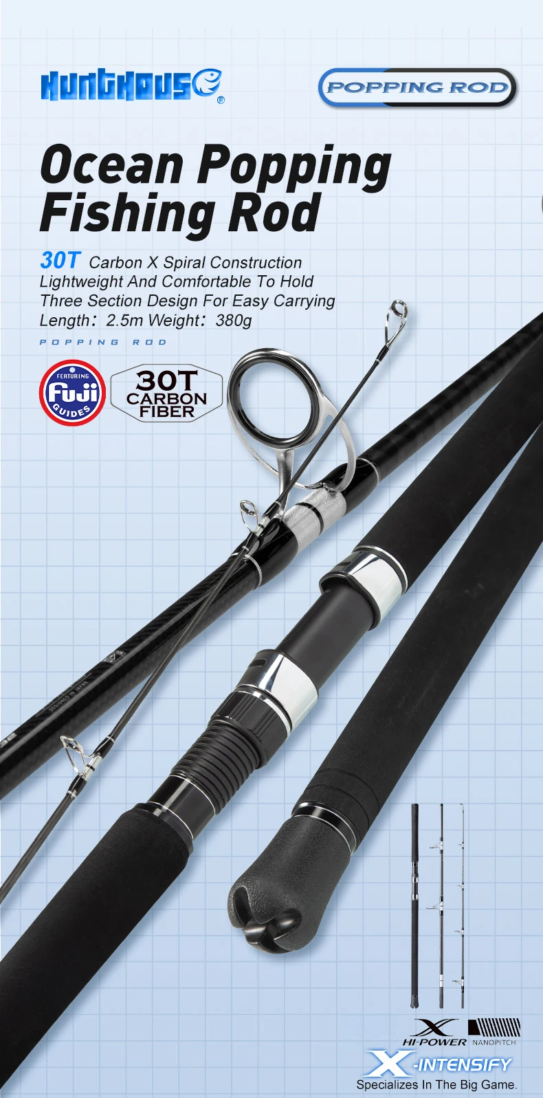 Hunthouse Popping Fising Rod 3 secciones Ocean Spinning 30T 2,5 m peso del señuelo 200g fibra de carbono Fuji anillo guía accesorios para barcos