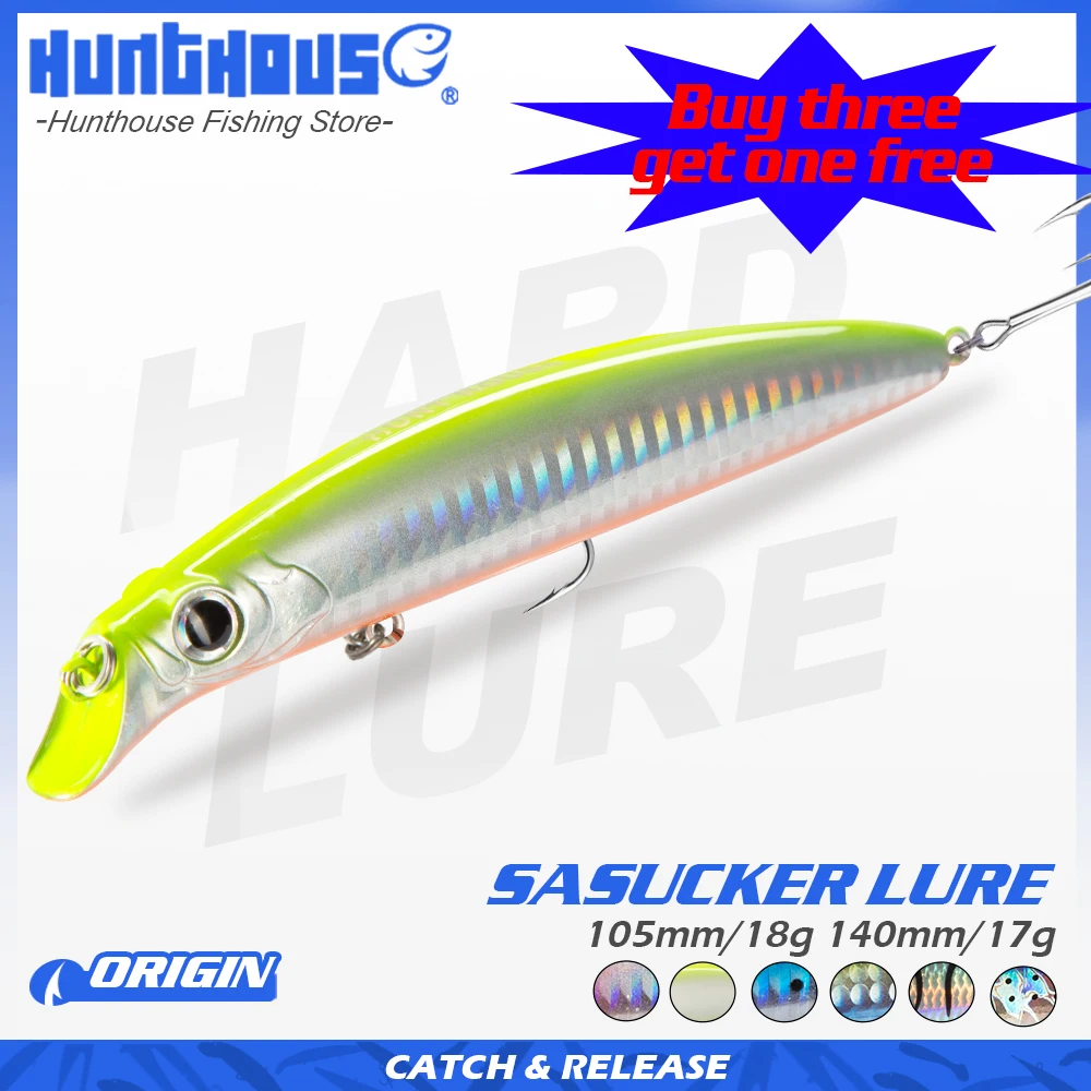 Hunthouse sasuck 105 y 140mm 18g y 17g lápiz flotante señuelo de pesca Wobbler cebo Jerkbait para pescar Seabass sin labios largo fundido