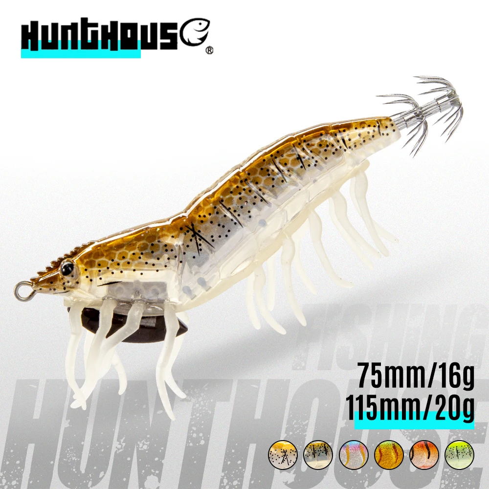 Hunthouse-señuelo de calamar 3D, cebo duro, luminoso, 75mm, 115mm, 16g, 20g