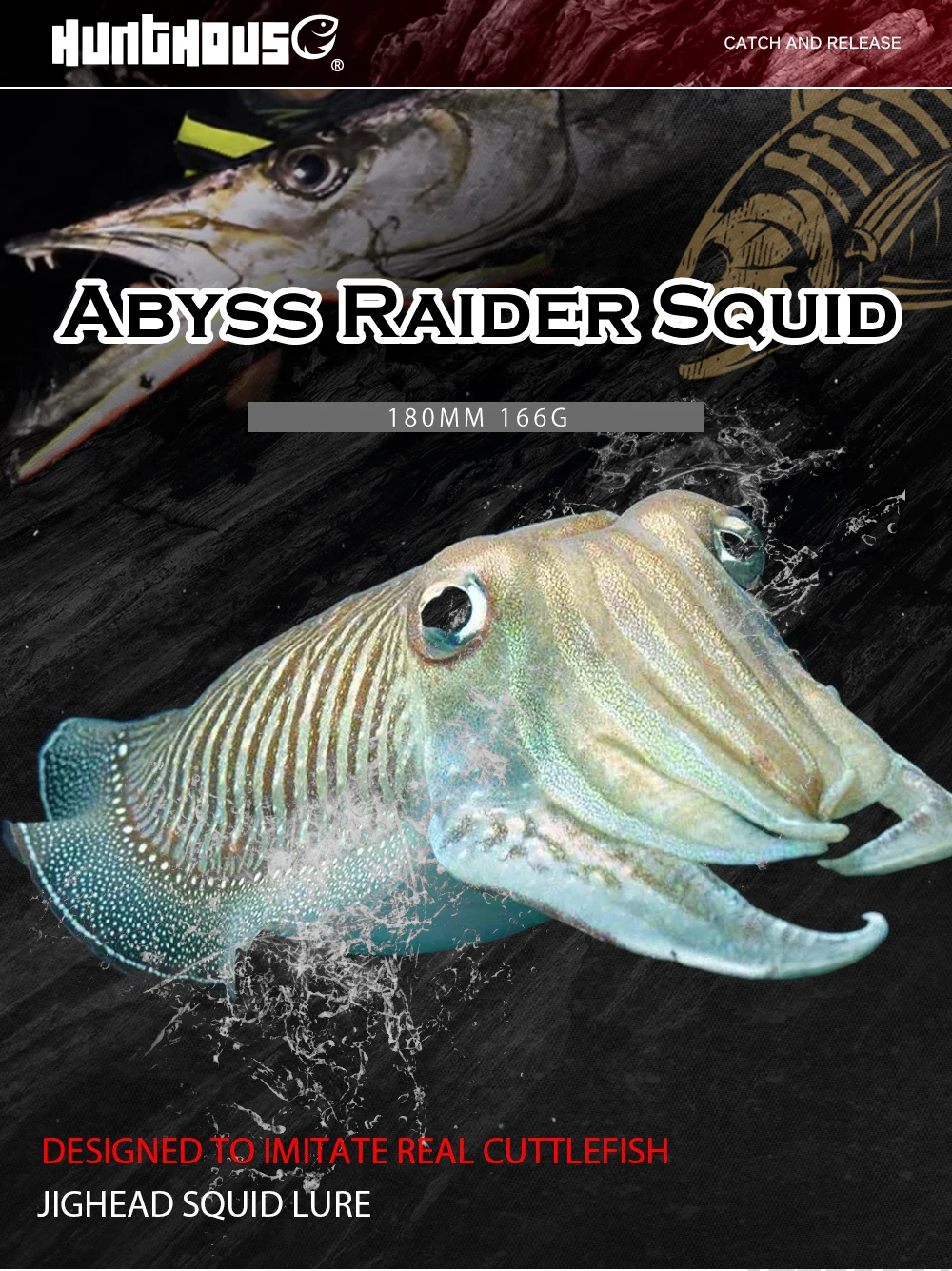HuntHouse-señuelo de calamar con cabeza de anzuelo, 180mm, 166g, silicona suave, pulpo, hundimiento, efecto UV para pesca en aguas profundas atún, LW299