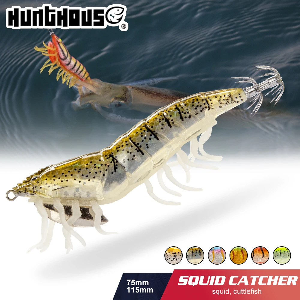 Hunthouse-Señuelo de gambas para pescar, cebo duro con diseño 3D de calmar de 11cm y 20 g, perfecto para pesca de mar