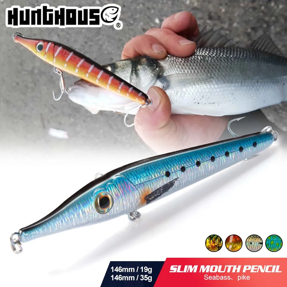 Hunthouse-señuelo duro de pesca de boca delgada, cebo duro flotante de 146mm/19g, hundimiento de 146mm/35g, Stickbait de fundición larga para aparejos de aguja de lubina
