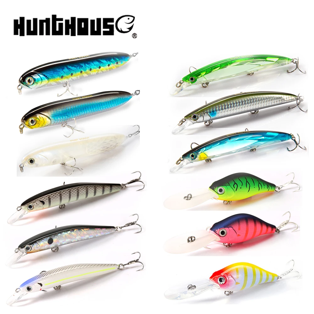 Hunthouse-señuelo duro de pesca, cebo de manivela de lápiz Minnow, 6cm-14cm, Jerkbait flotante de hundimiento, agua salada para trucha lubina