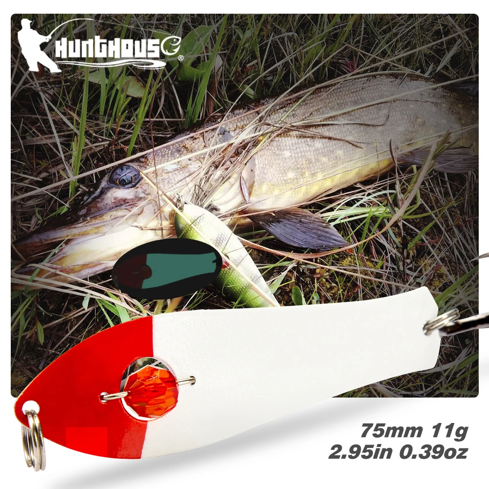 Hunthouse-señuelo giratorio de Metal para pesca, cuchara, 75mm, 11g, curricán para Lucio, perca Artificial, aparejos 2020