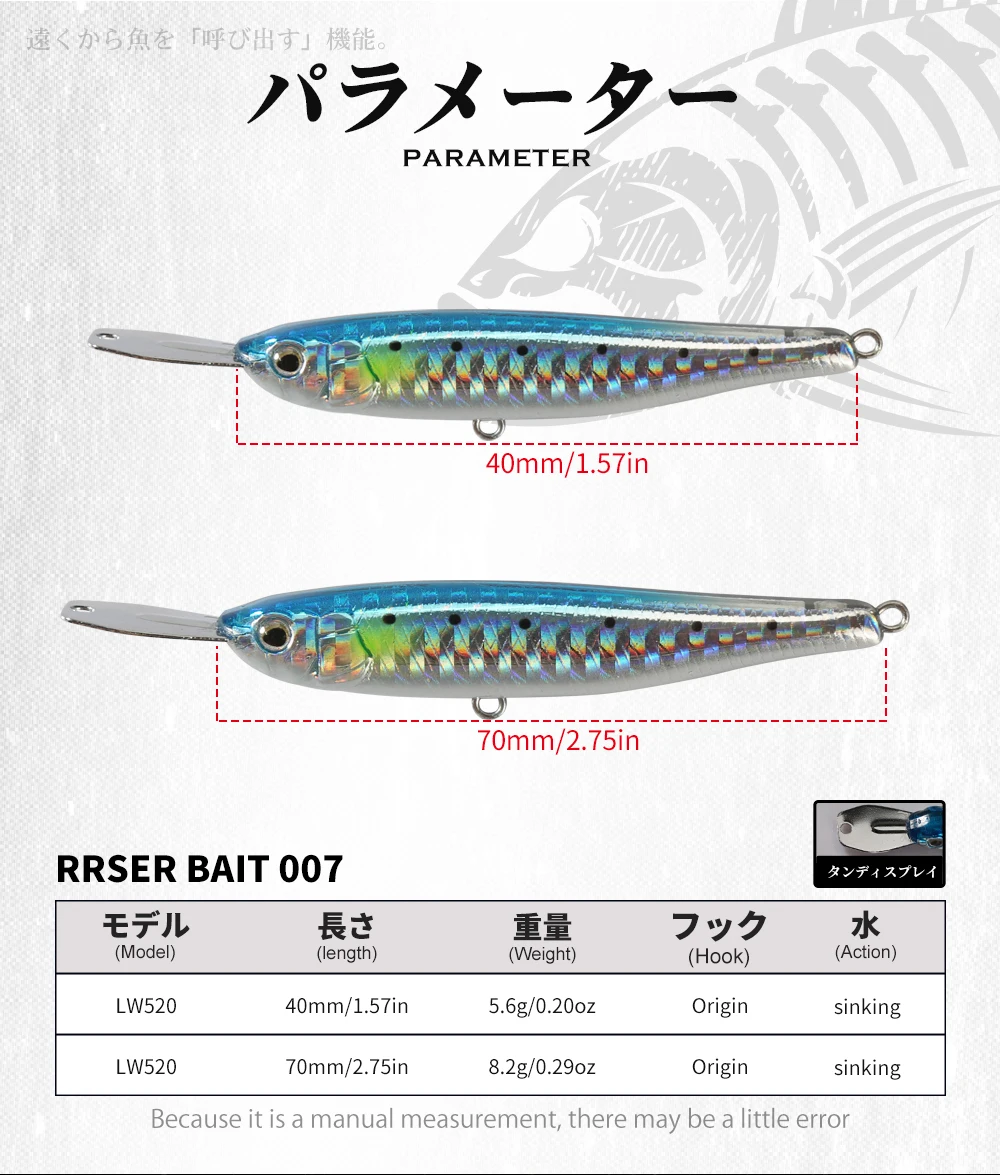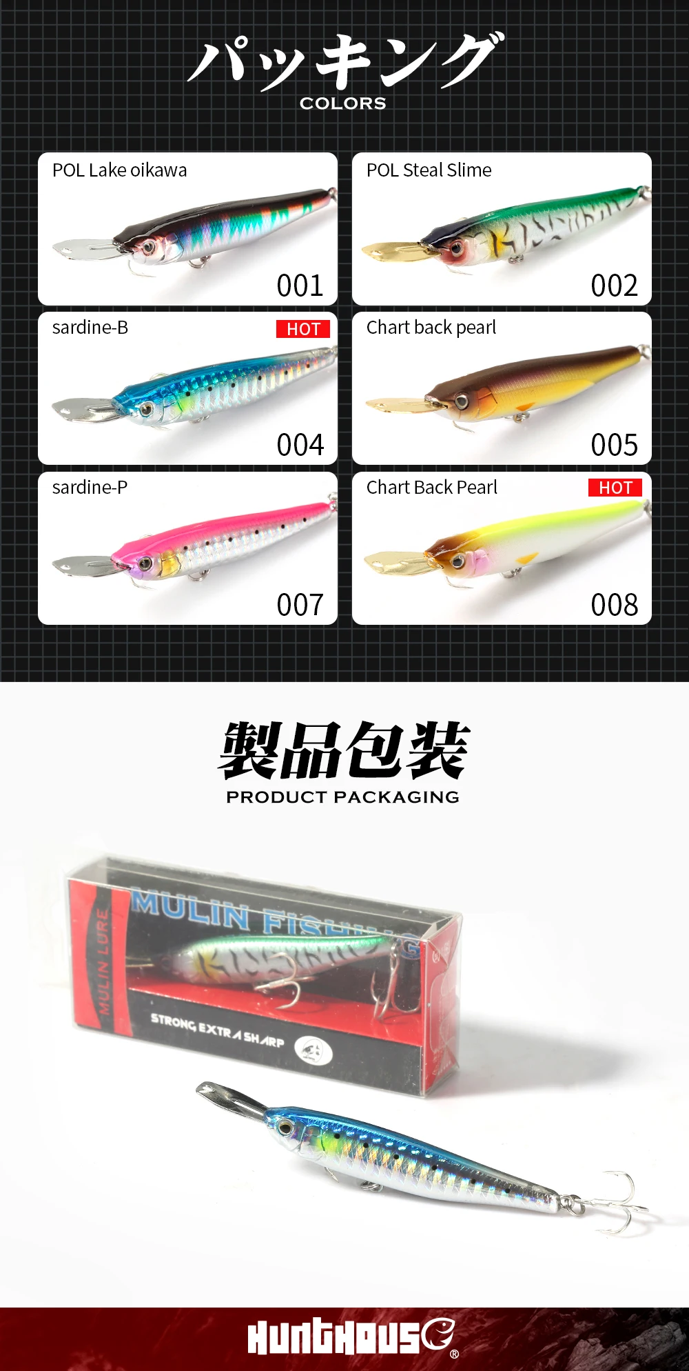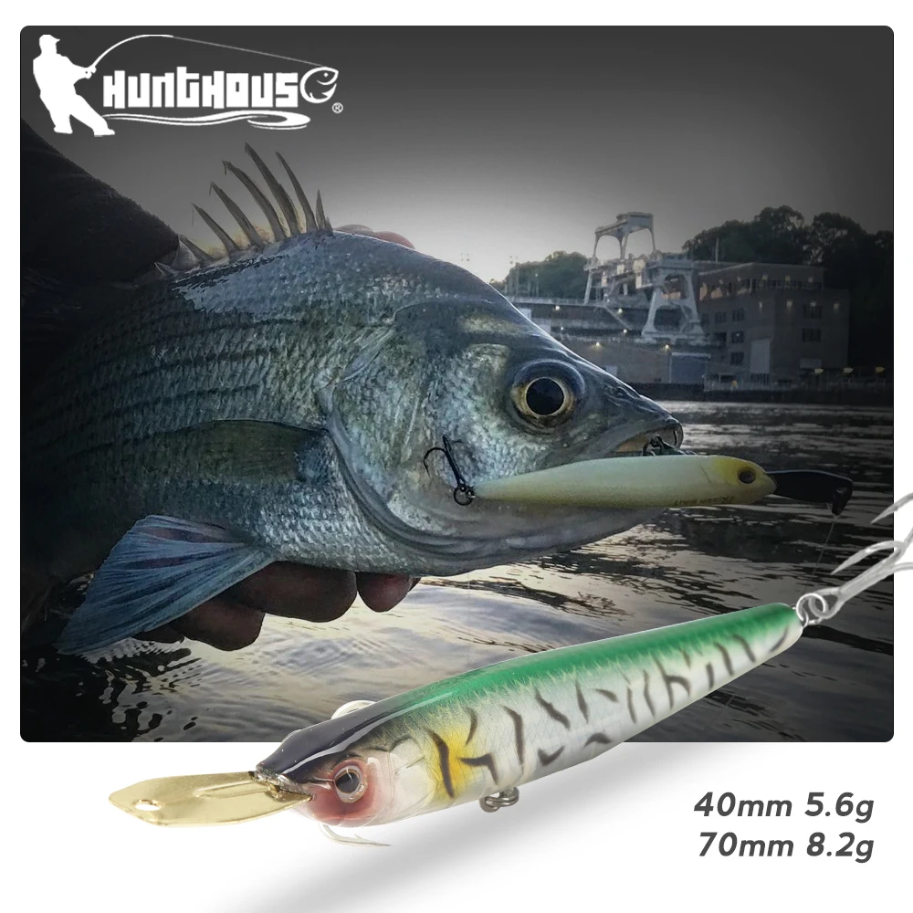Hunthouse pequeño tamaño pececillo señuelo duro de pesca 40/70mm 5,6/8,2g hundimiento silencioso metal lip cebo para lubina y trucha 6 colores DW001
