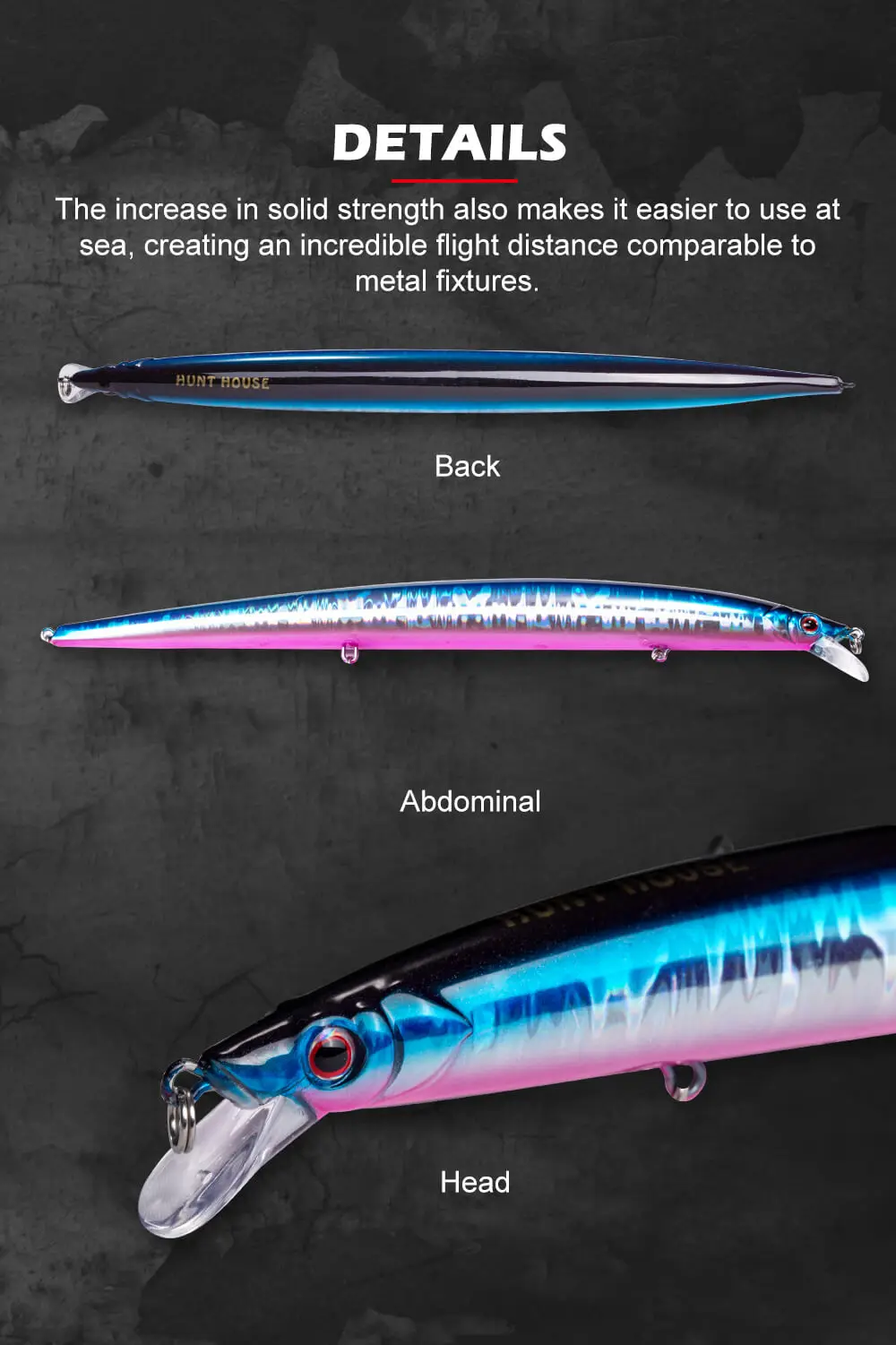 Hunthouse MOMMOTTI 210 es un tirón de agua salada que en muy poco tiempo ha ganado un gran acuerdo entre los pescadores europeos. Está diseñado para garantizar un lanzamiento largo en las condiciones climáticas y marinas más difíciles y flashes continuos durante el tirón. Un señuelo básico para el pescador mediterráneo. Hemos probado de forma deliberada una relación peso-volumen que nos garantiza una fundición larga y al mismo tiempo una ligereza refinada en la natación, tanto en la recuperación lineal como en la fundición, lo que los hace muy estables incluso en presencia de corrientes y hacia depredadores apáticos. La elección de la armadura interior nos forzó a un esfuerzo de diseño particular en la distribución de pesos internos de tungsteno con una atención constante a la perfección de la acción de natación. Adecuado para todos los depredadores como la lubina, el pez azul, el baracuda, el pez leerfish, el pez delfín, El amberjack, el mar y las especies de atún. La investigación llevó a crear una ligera flexión vental dando al señuelo una mayor estabilidad en la natación y que mostró ser especialmente tentado para los depredadores. La ligera curvatura en su parte ventral crea una natación única y más desordenada extremadamente capturadora, en particular durante la acción de sacudidas.