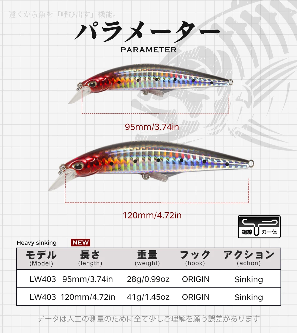 El labio vental LW403 genera elevación, levanta el cuerpo y mejora la respuesta durante la recuperación a baja velocidad. El control G aumenta el balanceo durante el columpio, lo que trae más movimientos pequeños como peces. La mayor fuerza del sólido también facilita el uso en el mar, creando distancias de vuelo increíbles comparables a los accesorios metálicos.