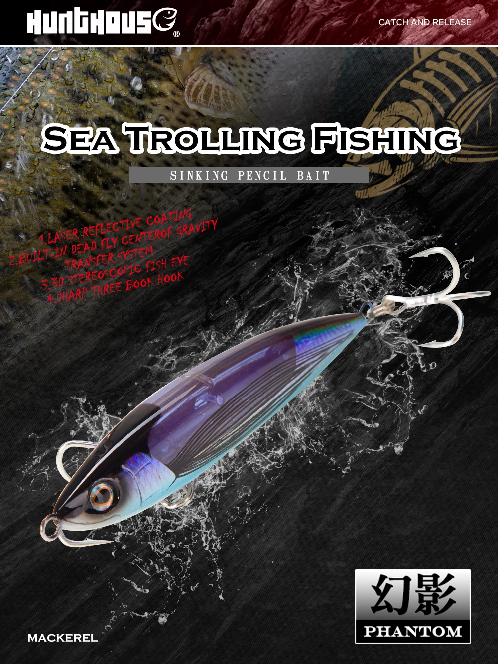 Hunthouse hundimiento lápiz cebo agua salada pesca señuelo 150mm 68G curricán láser revestimiento reflectante hoja Flash para atún caballa