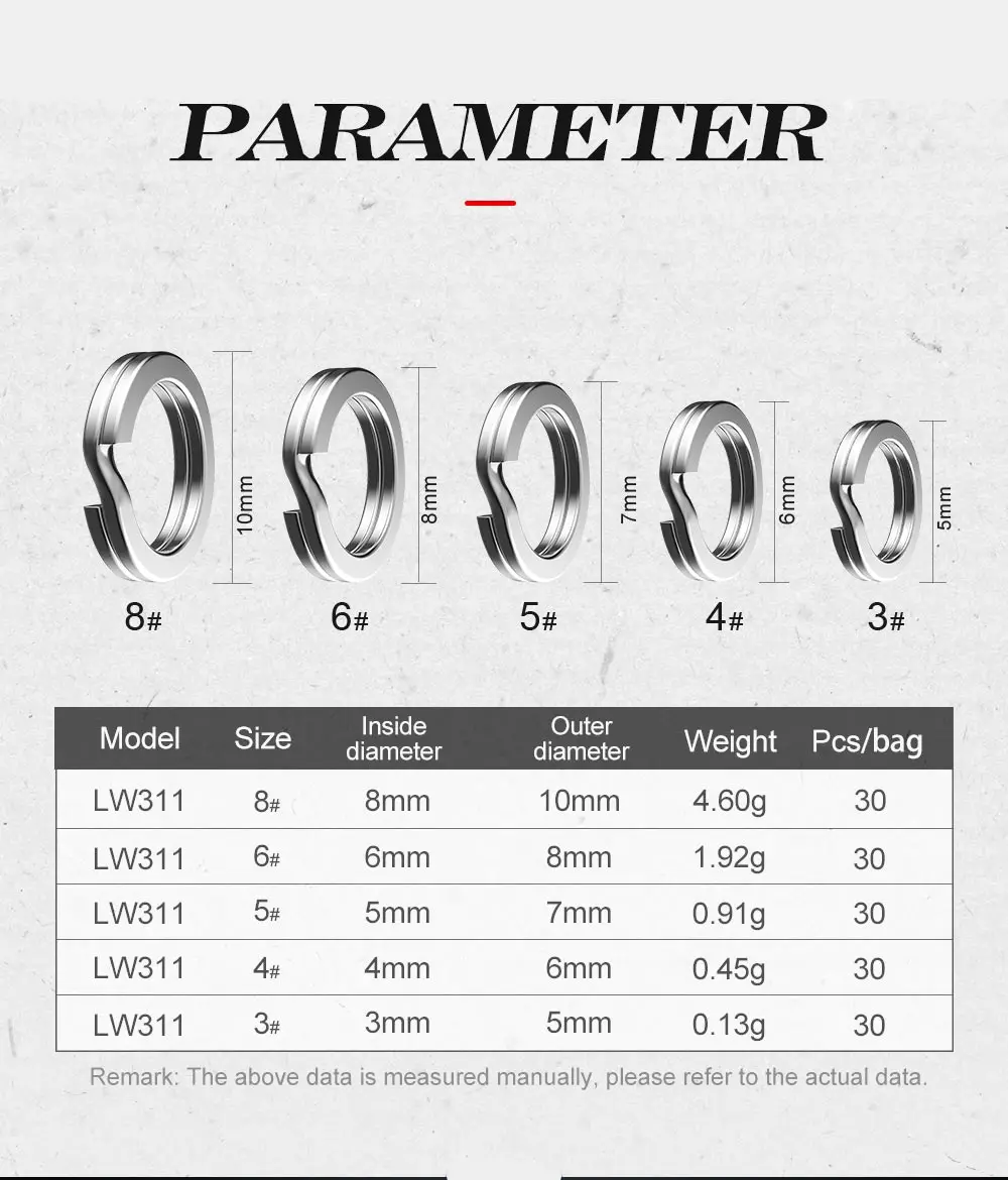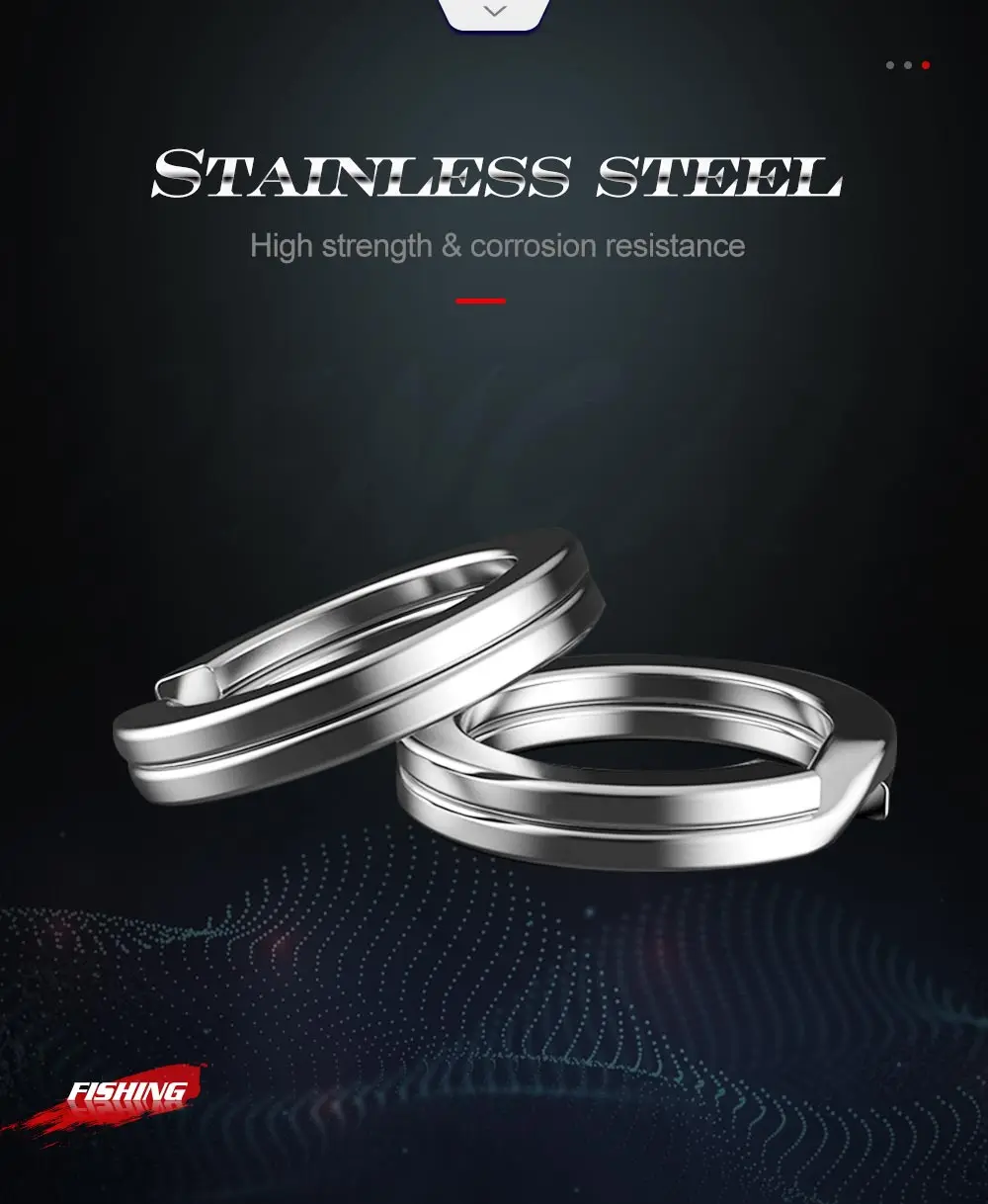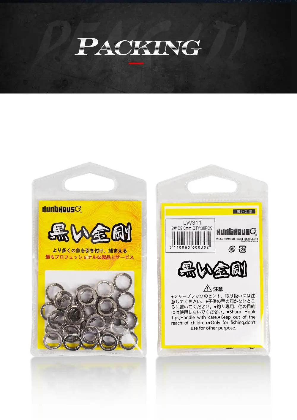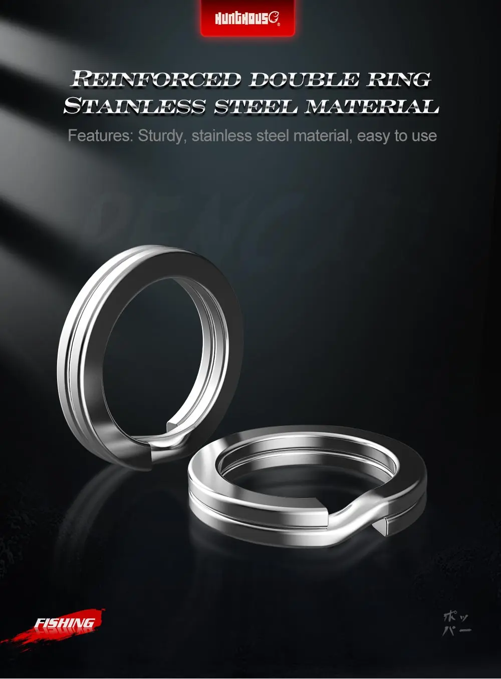 Hunthouse-señuelo de pesca con anillos divididos, conector giratorio de acero inoxidable, 30 unids/bolsa, accesorio de pesca de doble anillo de 5-10MM de alta calidad