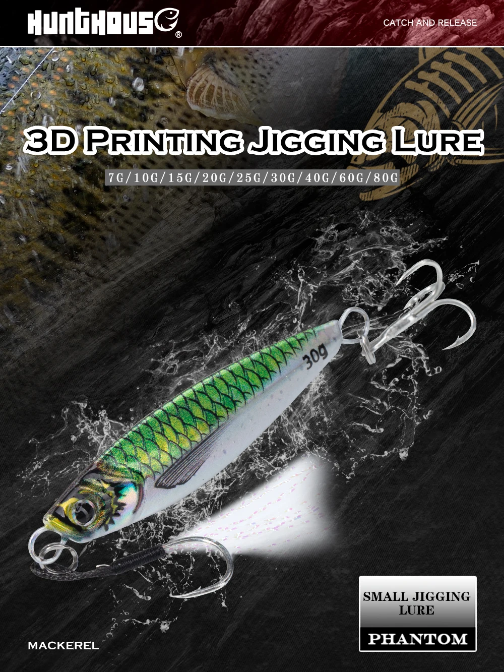 Hunthouse Japen Metal fundido Jigging cuchara señuelo de pesca 7-80g 3D impreso Shore Casting cebo Artificial duro para lubina trucha mar