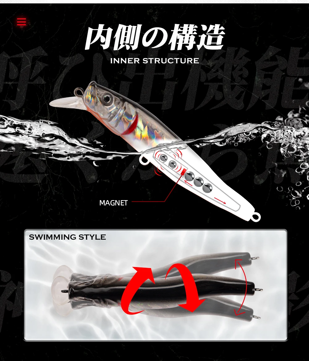 Perseguir un movimiento aún más hermoso forma Real y cambio del centro de gravedad, rollo wobbn parpadeante para llevar A los peces una acción de rollo oscilante con un rollo fuerte y exigente que atrae objetivos y picaduras mientras Rueda y parpadea maravillosamente hacia arriba y hacia abajo mientras tambalea. Además, el cuerpo asimétrico crea una onda vibrante y una silueta natural desde el ángulo inferior que tienta al objetivo. No solo la acción sino también la forma del cuerpo que persigue el realismo para que funcione en la forma se acerca naturalmente. El movimiento del centro de gravedad del imán tipo martillo adoptado se desarrolló originalmente. El martillo con el imán y el peso insertado se mueve hacia atrás durante el lanzamiento, liberando una bola de peso que está en estrecho contacto con el imán. Esto permite que el peso se mueva hacia atrás, permitiendo una amplia gama de capturas con una distancia de vuelo excepcional. Un modelo formal de afinación gruesa que empaqueta el movimiento de acción, forma y centro de gravedad en el cuerpo. Por favor, experimente el encuentro con varias especies de peces con este señuelo.