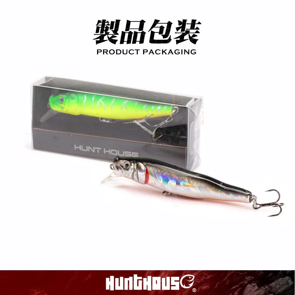 Hunthouse-señuelo de pesca con FORMA de pececillo brillante, cebo duro flotante, Wobbler, Jerkbait de fundición, 65mm, 85mm, aparejos de peces de agua salada